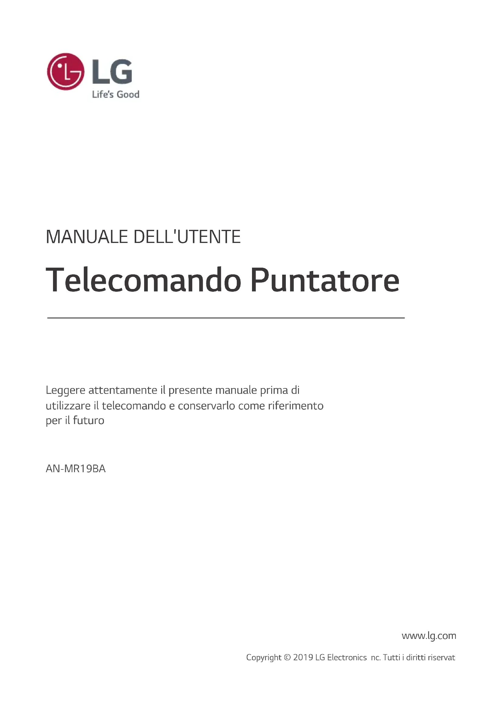 Scarica le istruzioni per il tuo Telecomando in formato PDF gratuitamente! Trova il tuo manuale ANMR19BA - LG e riprendi in mano il tuo dispositivo elettronico. In questa pagina sono pubblicati tutti i documenti necessari per l'utilizzo del tuo dispositivo. ANMR19BA del marchio LG.