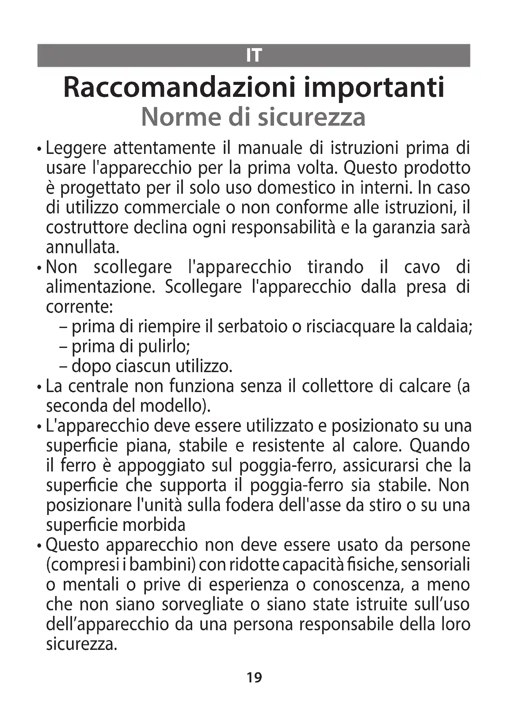 - La centrale vapore è un apparecchio elettrico: deve essere utilizzato in condizioni normali.