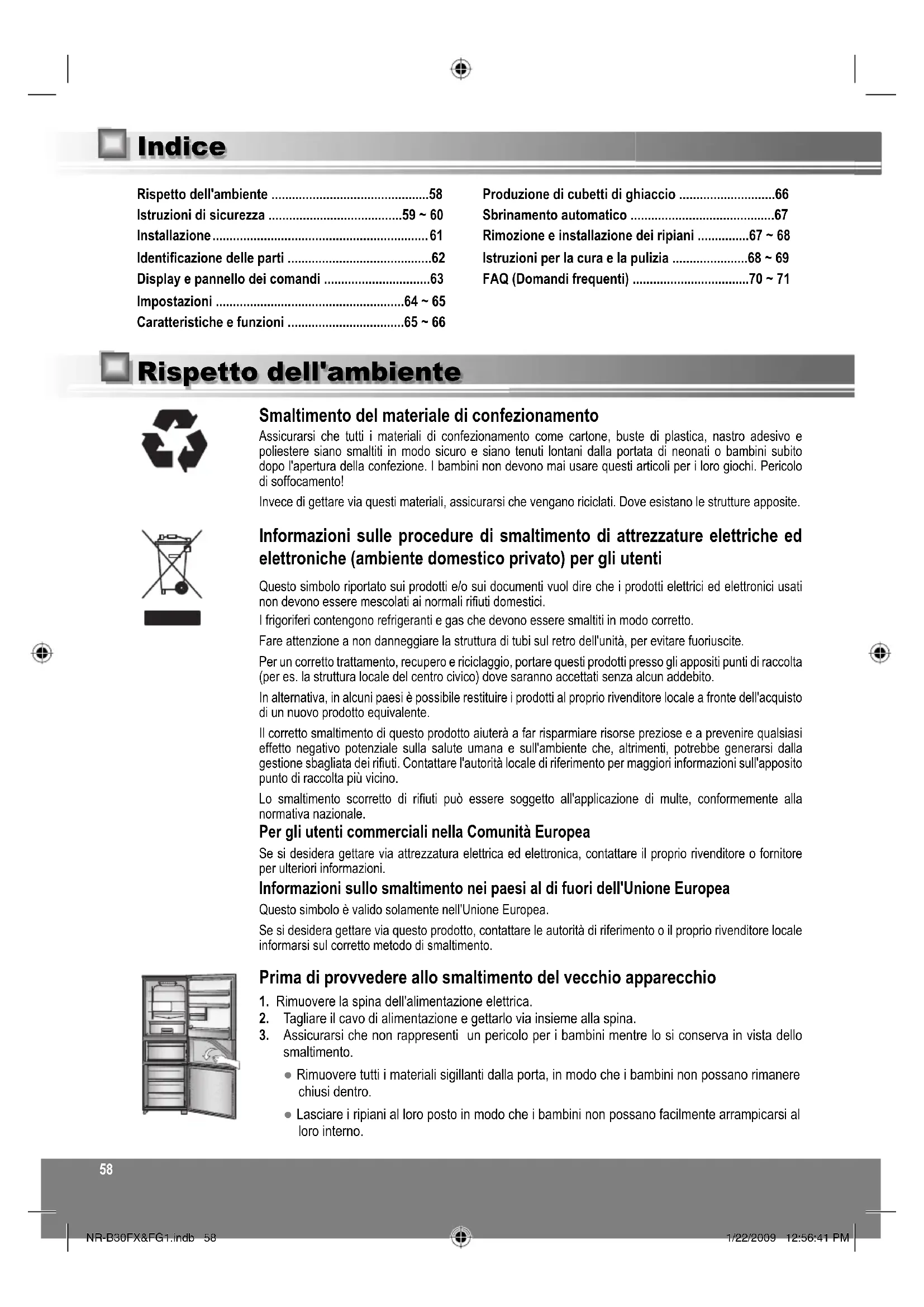- ● Le réfrigérateur est-il en mode Holiday ? NR-B30FX&FG1.indb 57NR-B30FX&FG1.indb 57 1/22/2009 12:56:41 PM1/22/2009 12:56:41 PM58 Rispetto dell'ambiente p. 58