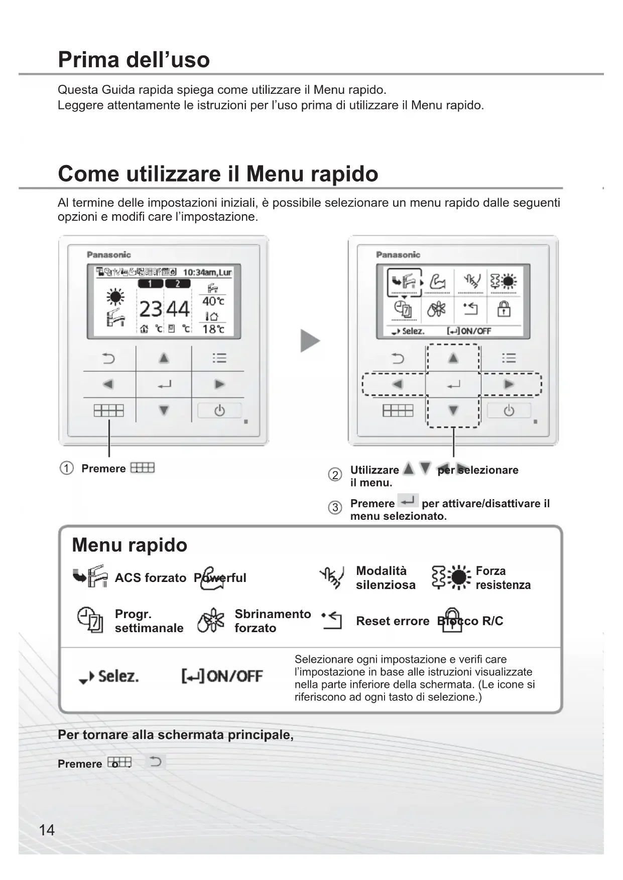 Premere . Utilizzare per selezionare il menu. Premere per attivare/disattivare il menu selezionato.15 Italiano Come utilizzare il Menu rapido Selezionare questa icona per attivare o disattivare la funzione ACS forzata. Premere per confermare la scelta.