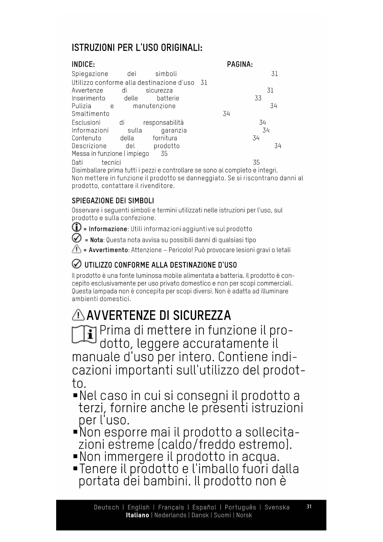 | Avvertenze | di | sicurezza | 31 | ||