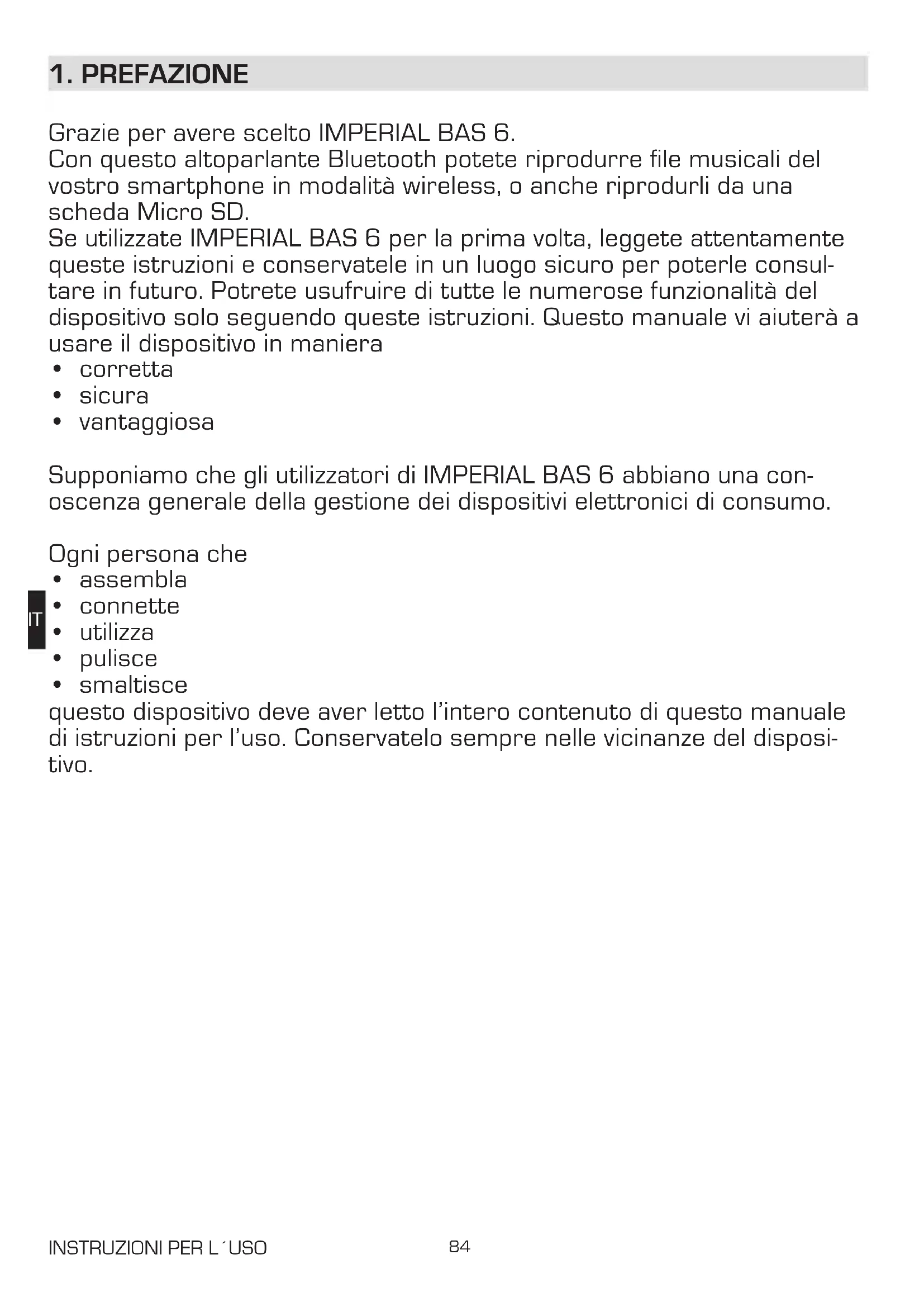 Se utilizes区别 IMPERIAL BAS 6 per la prima volta, leggete attentamente queste istruzioni e conservatele in un luogo sicuro per poterle consul-tare in futuro. Potrete usufruire di tutte le numerose funzionalità del dispositivo solo seguito queste istruzioni. Questo manuale vi aiuterà a usare il dispositivo in maniera