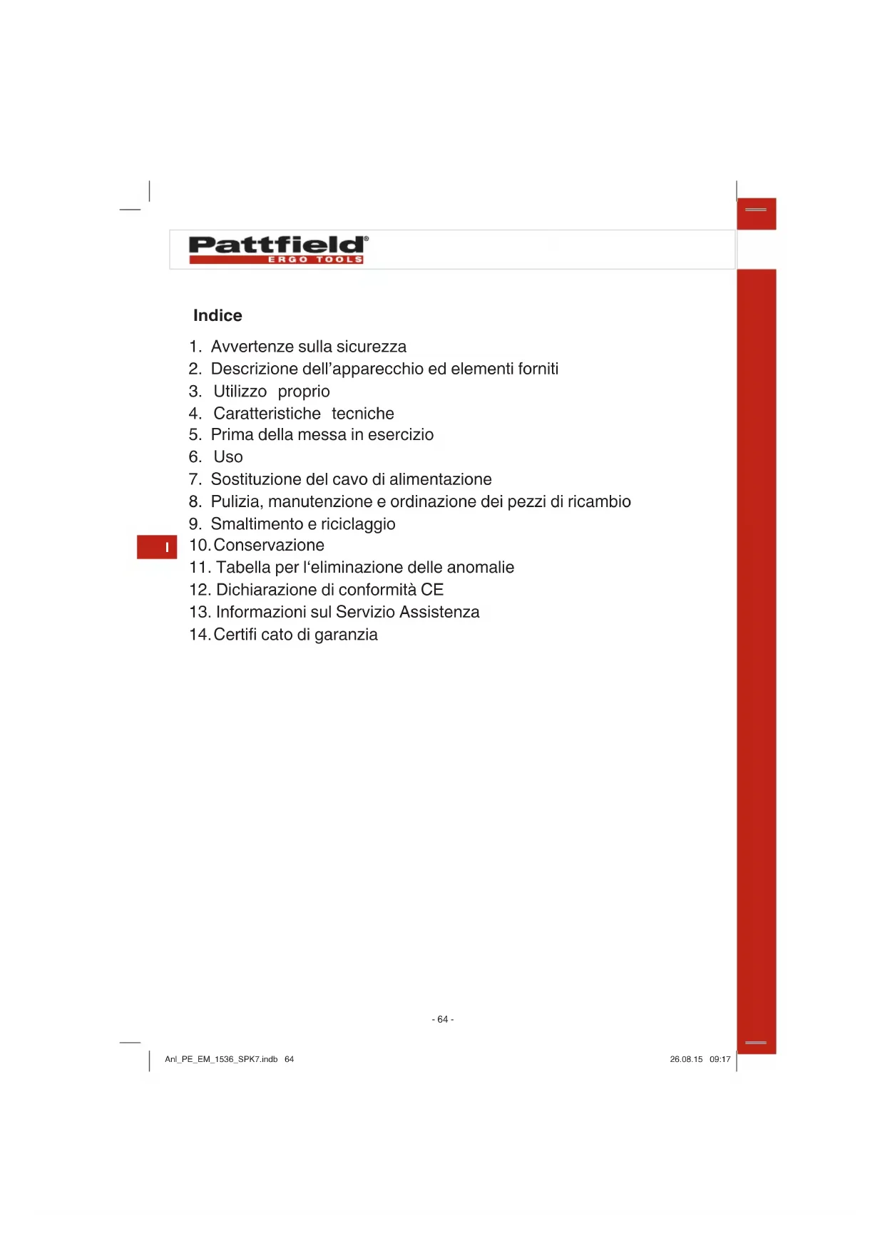 MANUALE UTENTE PEEM 1536 Pattfield