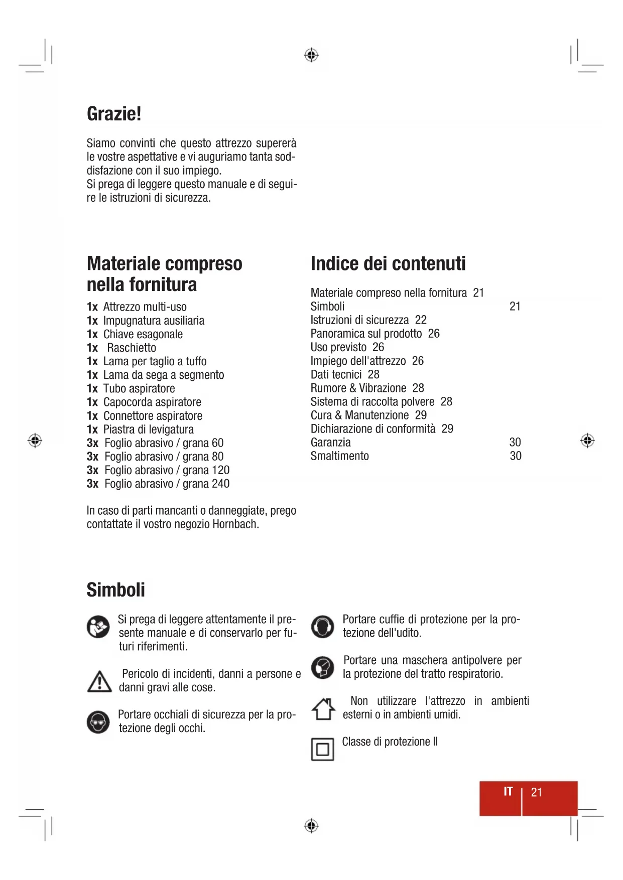 Siamo convinti che questo attrezzo superere le vosre aspettative e vi auguriamo tanta soddisfazione con il suo impiego. Si prega di leggere quello manuale e di seguire le istruzioni di sicurezza.