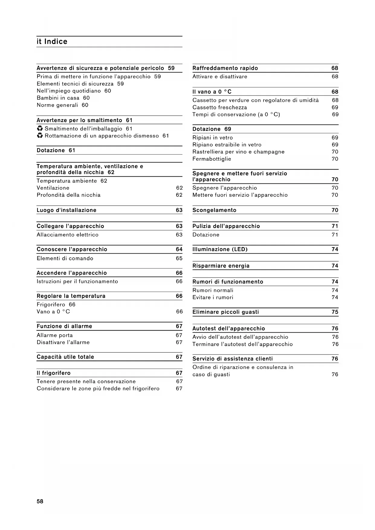 Temperatura ambiente, ventilazione e profondità della nicchia 62