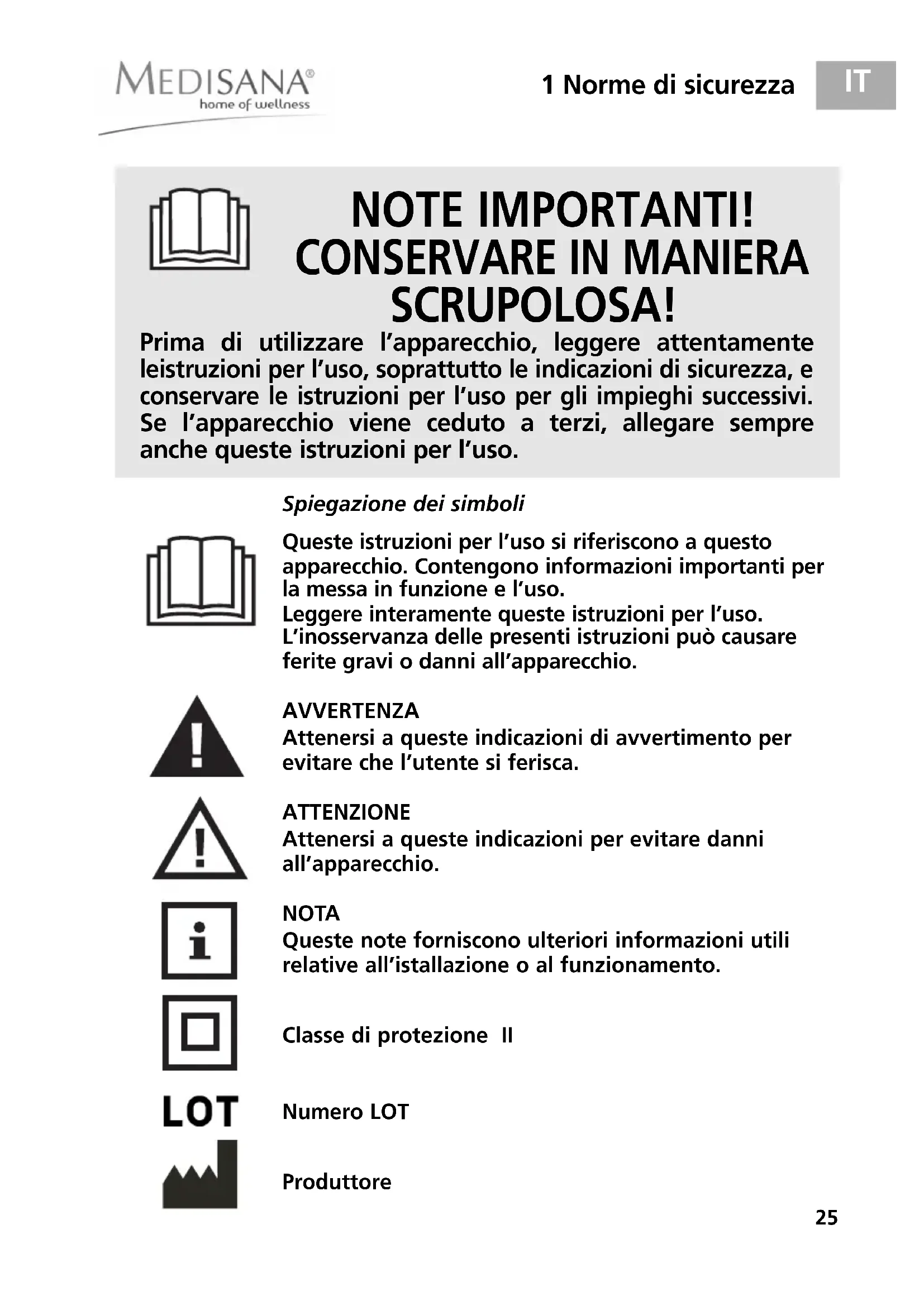 - I prodotti MEDISANA hanno una garanzia di tre anni a partire dalla data di vendita. La data di acquisto deve essere comprovata in caso di garanzia dalla ricevuta di acquisto o dalla fattura.