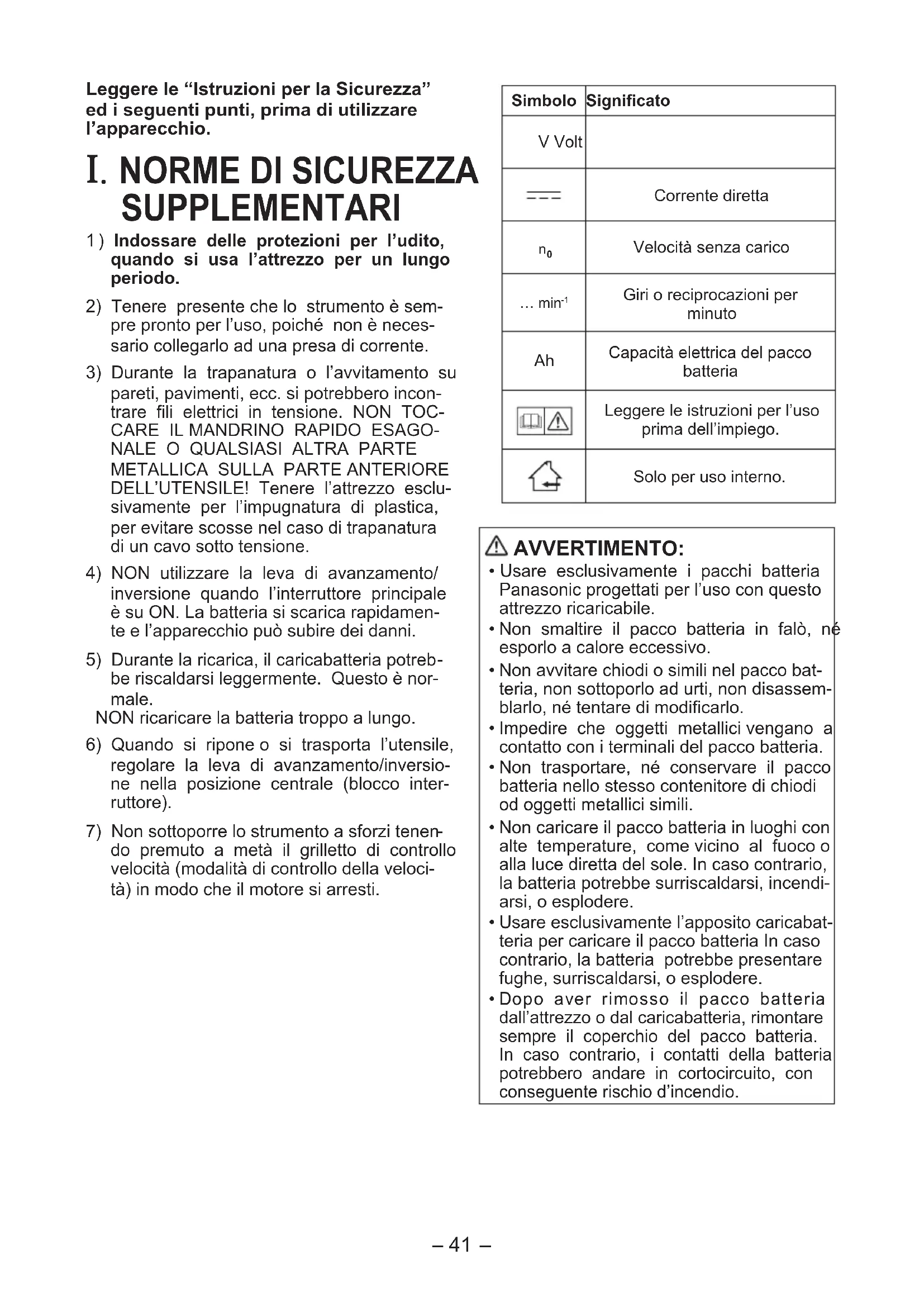 Scarica le istruzioni per il tuo Avvitatore in formato PDF gratuitamente! Trova il tuo manuale EY7541 - PANASONIC e riprendi in mano il tuo dispositivo elettronico. In questa pagina sono pubblicati tutti i documenti necessari per l'utilizzo del tuo dispositivo. EY7541 del marchio PANASONIC.