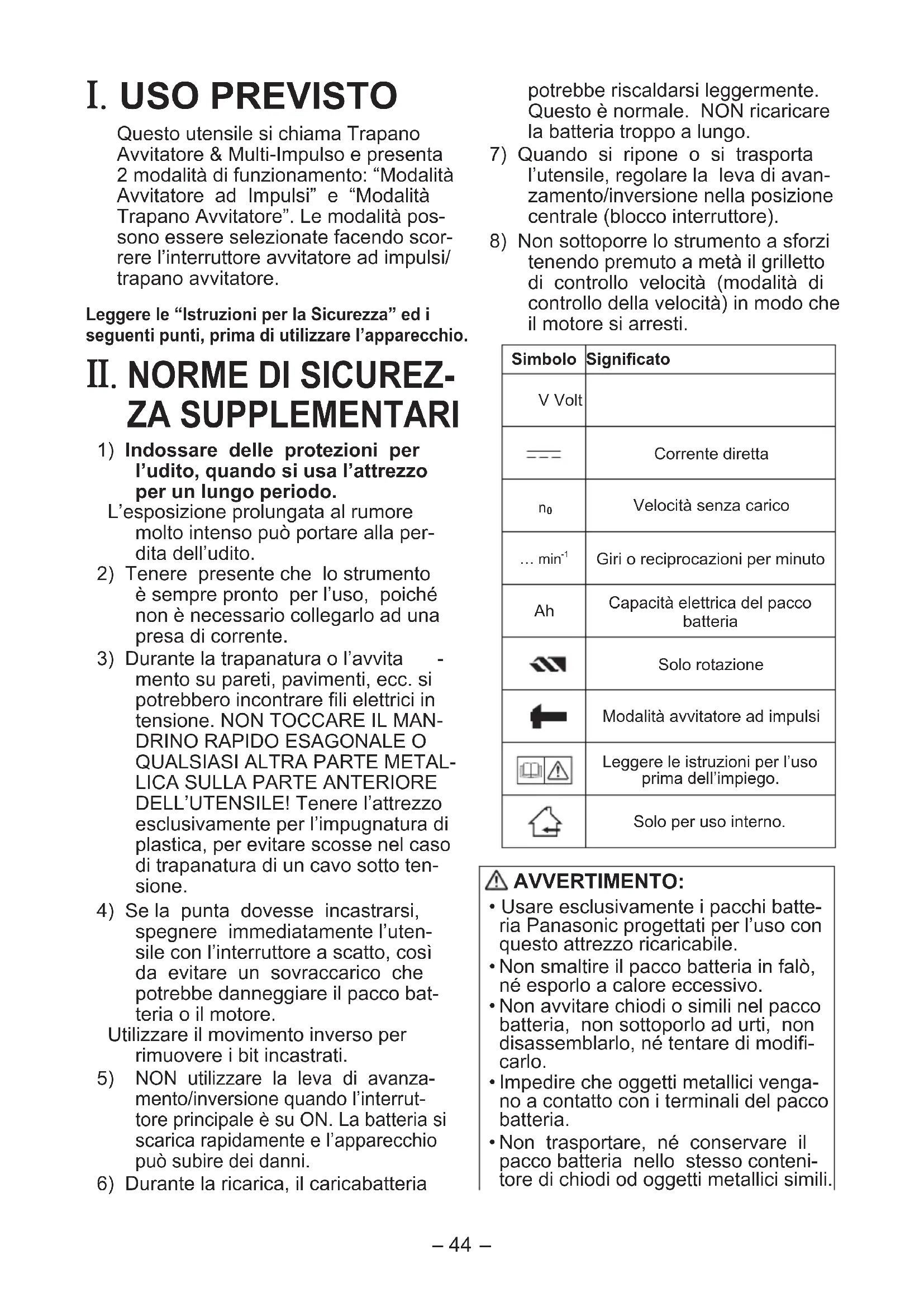 Scarica le istruzioni per il tuo Trapano in formato PDF gratuitamente! Trova il tuo manuale EY7542 - PANASONIC e riprendi in mano il tuo dispositivo elettronico. In questa pagina sono pubblicati tutti i documenti necessari per l'utilizzo del tuo dispositivo. EY7542 del marchio PANASONIC.