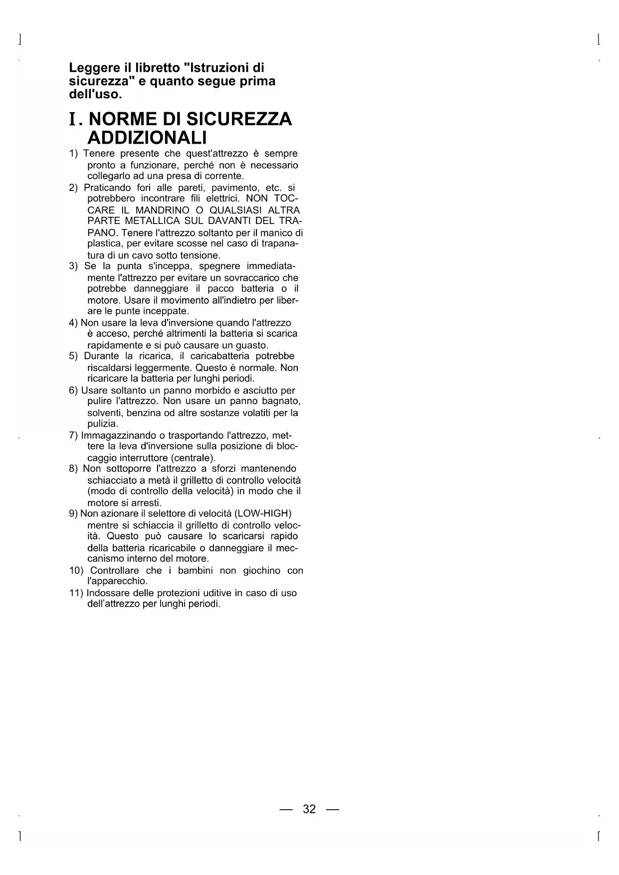 I. NORME DI SICUREZZA ADDIZIONALI
