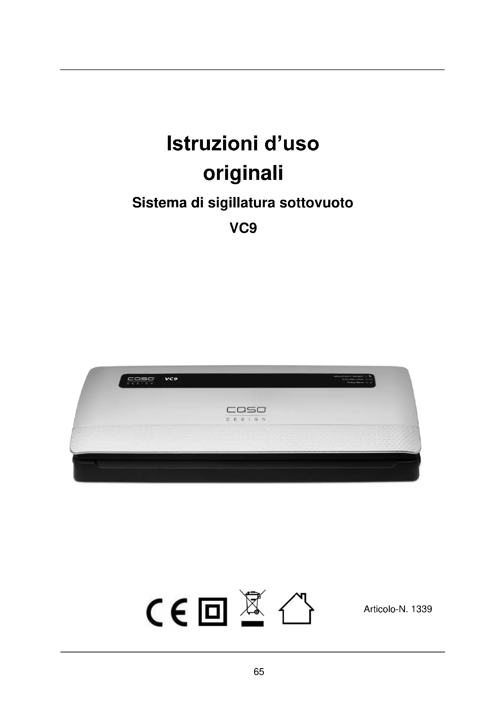 Scarica le istruzioni per il tuo Macchine per confezionamento sottovuoto in formato PDF gratuitamente! Trova il tuo manuale VC9 - CASO e riprendi in mano il tuo dispositivo elettronico. In questa pagina sono pubblicati tutti i documenti necessari per l'utilizzo del tuo dispositivo. VC9 del marchio CASO.