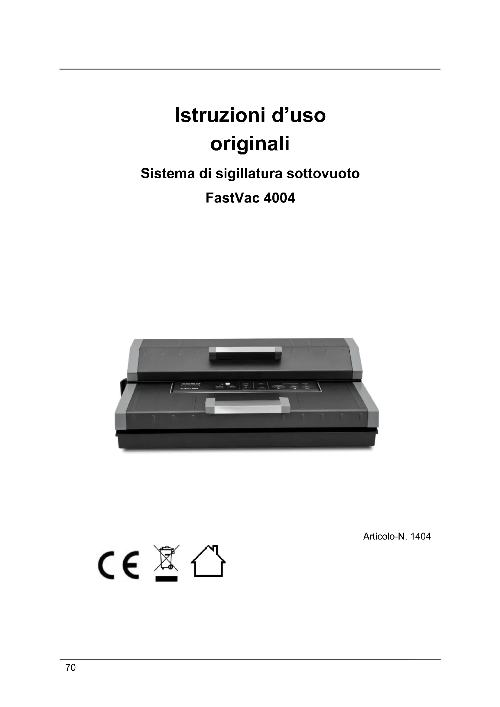 Scarica le istruzioni per il tuo Macchine per confezionamento sottovuoto in formato PDF gratuitamente! Trova il tuo manuale FastVac 4004 - CASO e riprendi in mano il tuo dispositivo elettronico. In questa pagina sono pubblicati tutti i documenti necessari per l'utilizzo del tuo dispositivo. FastVac 4004 del marchio CASO.