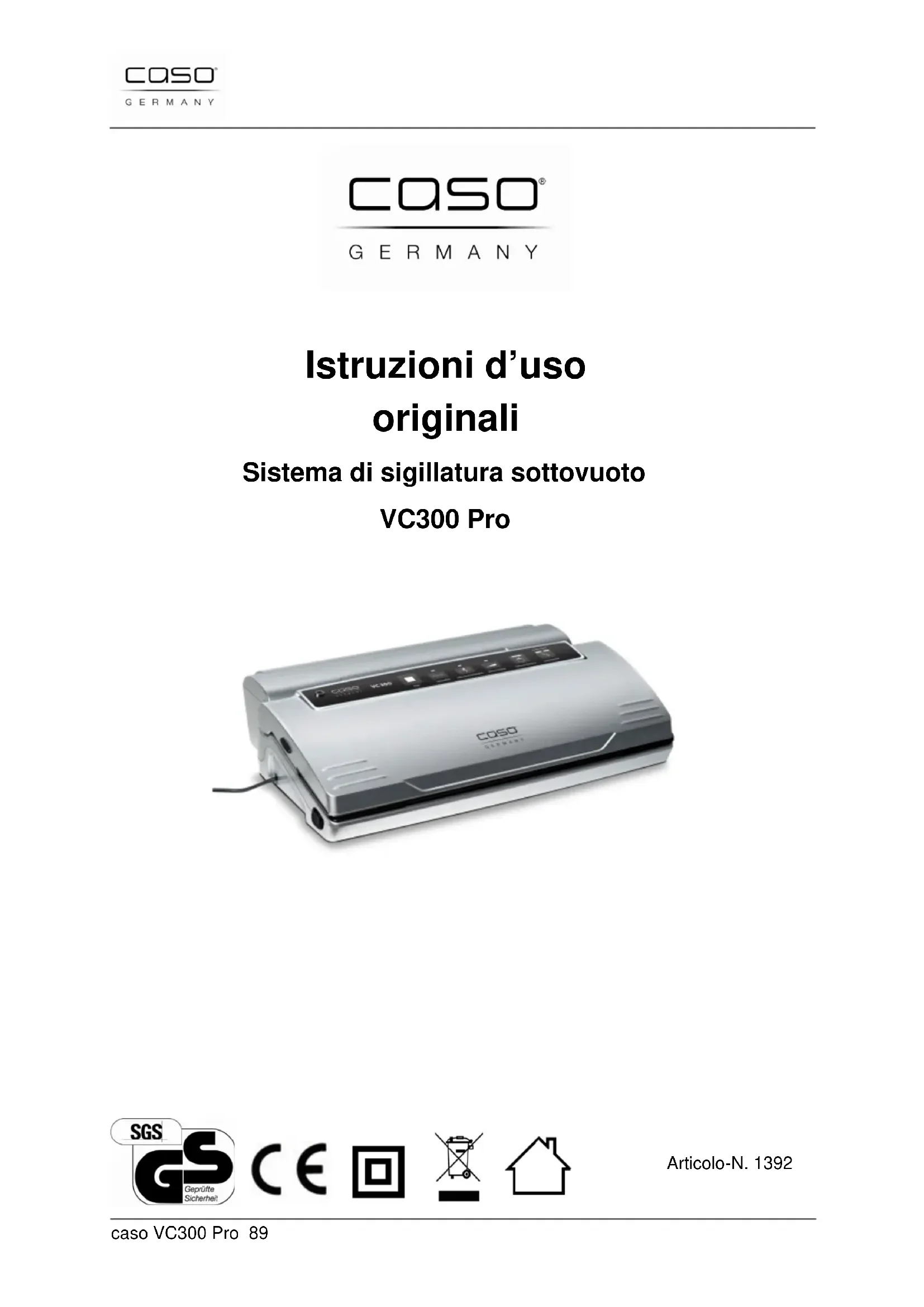 Trova gratuitamente il manuale del dispositivo VC300 Pro CASO in formato PDF.