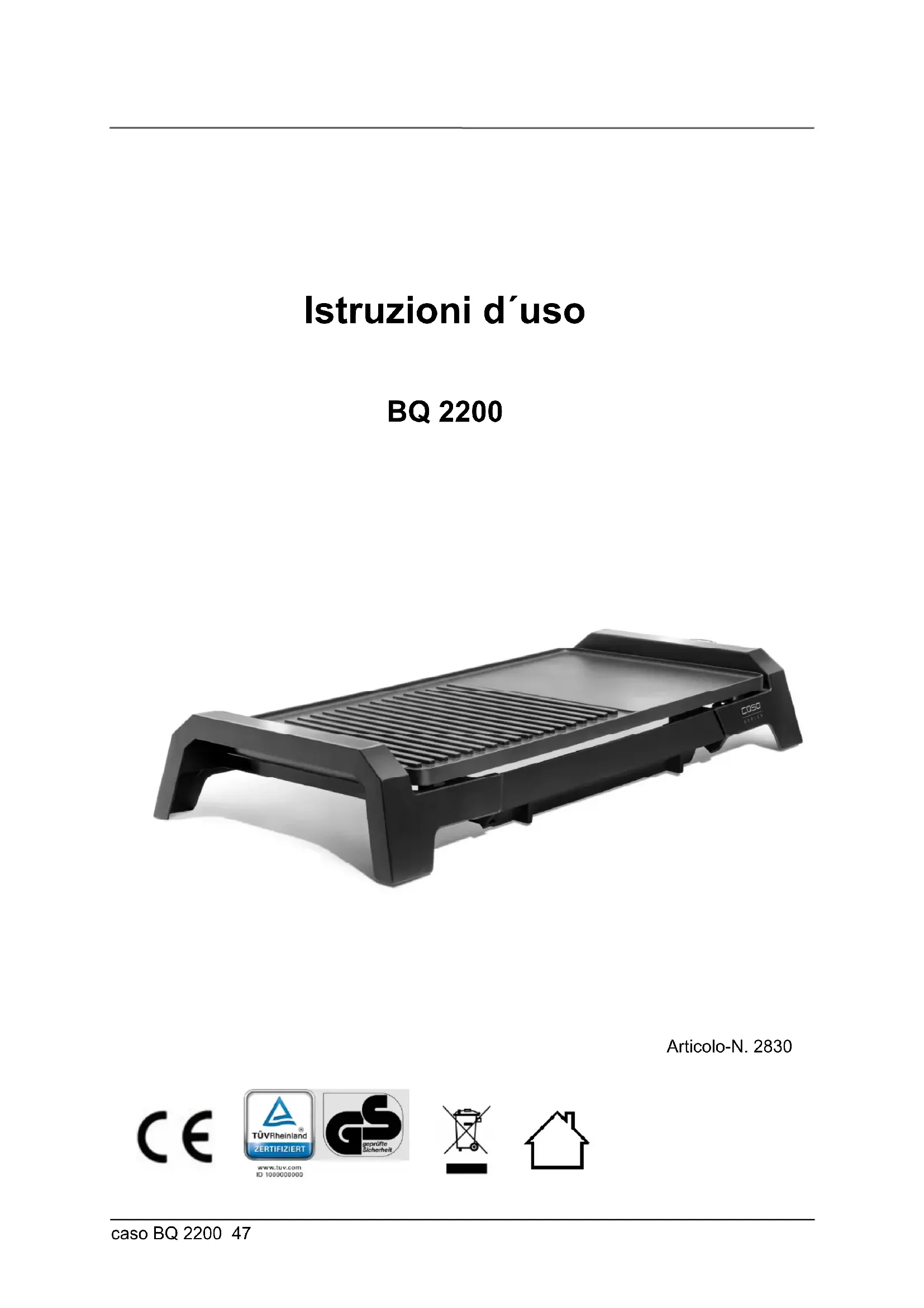 BQ2200 - Piastra per griglia CASO - Manuale utente e istruzioni gratuiti