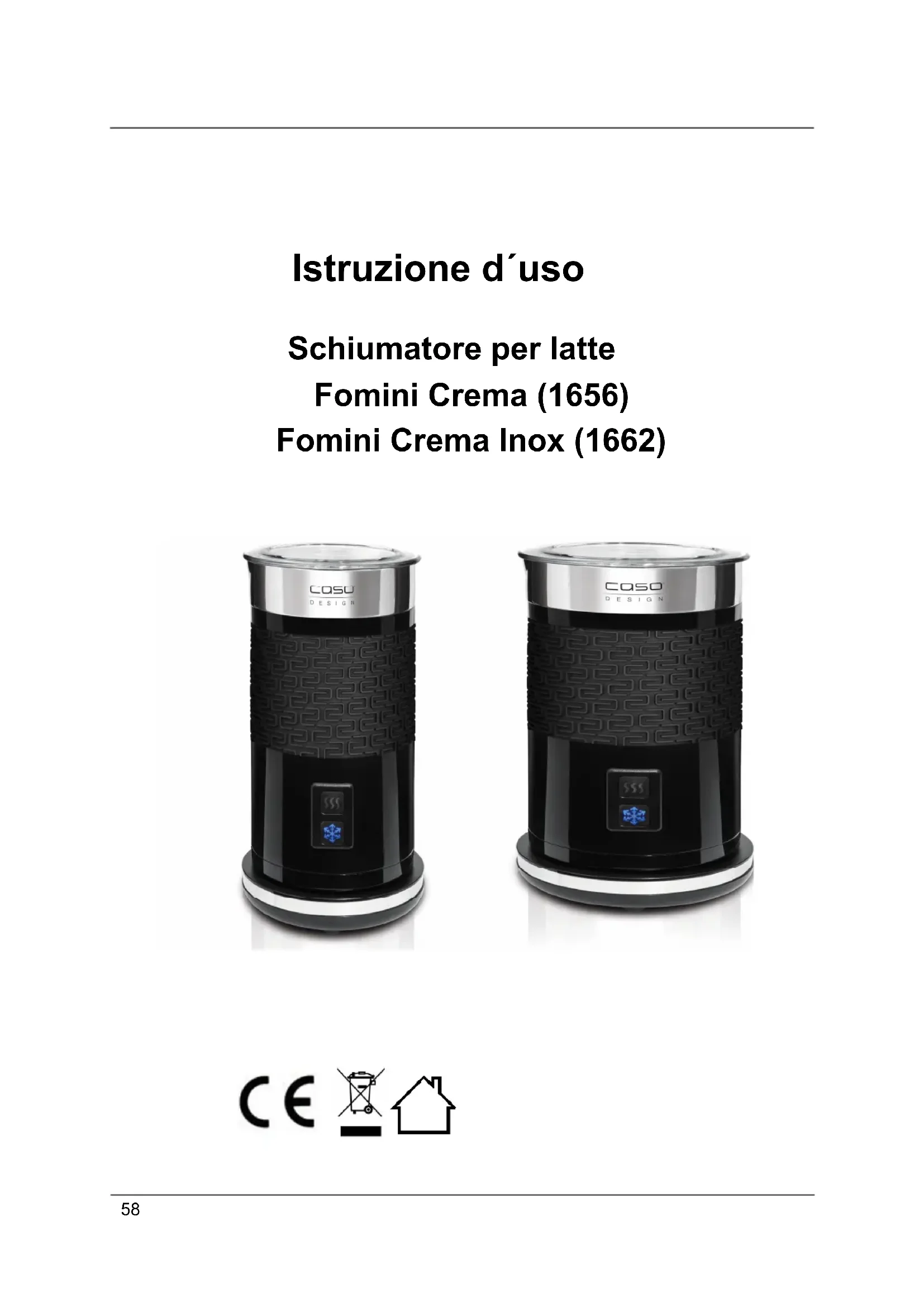 Scarica le istruzioni per il tuo Montalatte in formato PDF gratuitamente! Trova il tuo manuale Fomini Crema 1656 - CASO e riprendi in mano il tuo dispositivo elettronico. In questa pagina sono pubblicati tutti i documenti necessari per l'utilizzo del tuo dispositivo. Fomini Crema 1656 del marchio CASO.