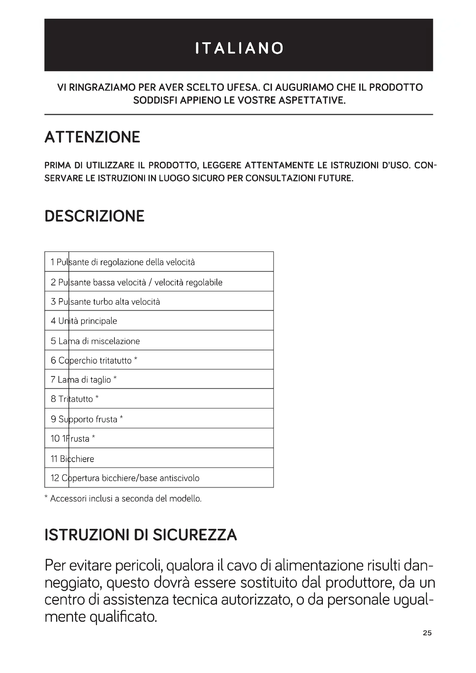 BP4560 - Frullatore UFESA - Manuale utente e istruzioni gratuiti