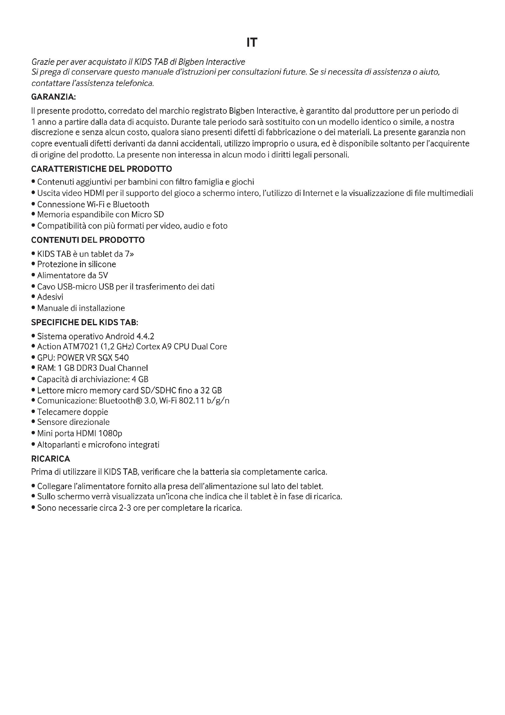 Grazie per aver acquistato il KIDS TAB di Bigben Interactive