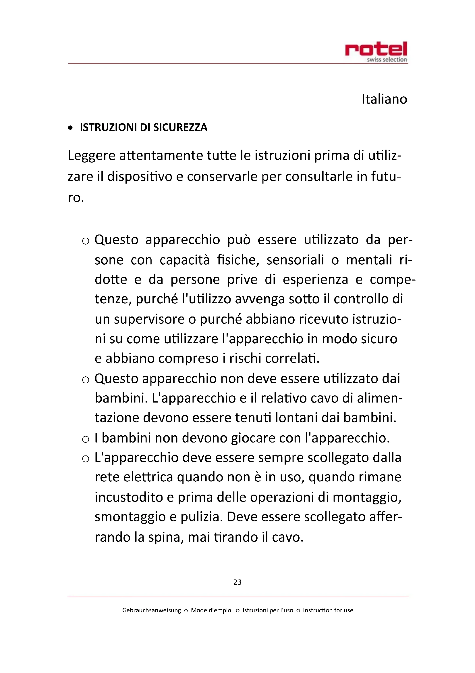 Per lo smaltimento corretto, la macchina deve essere restituita al rivenditore specializzato, al servizio di assistenza o alla ditta Rotel AG.