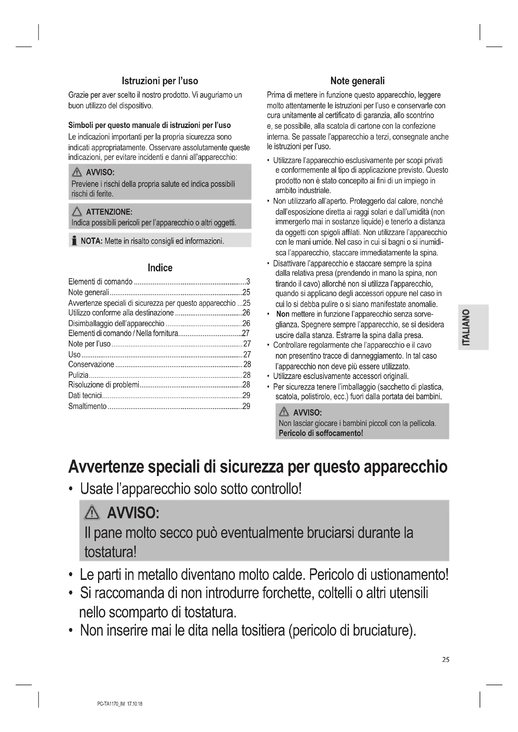 - Non inserire mai le dita nella tositiera (pericolo di bruciature).PC-TA1170_IM 17.10.18
