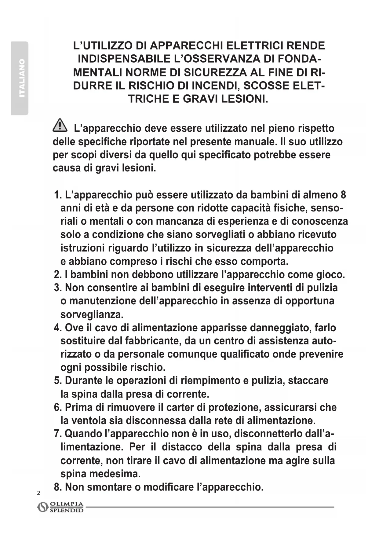 MANUALE UTENTE Pelèr 4 OLIMPIA SPLENDID