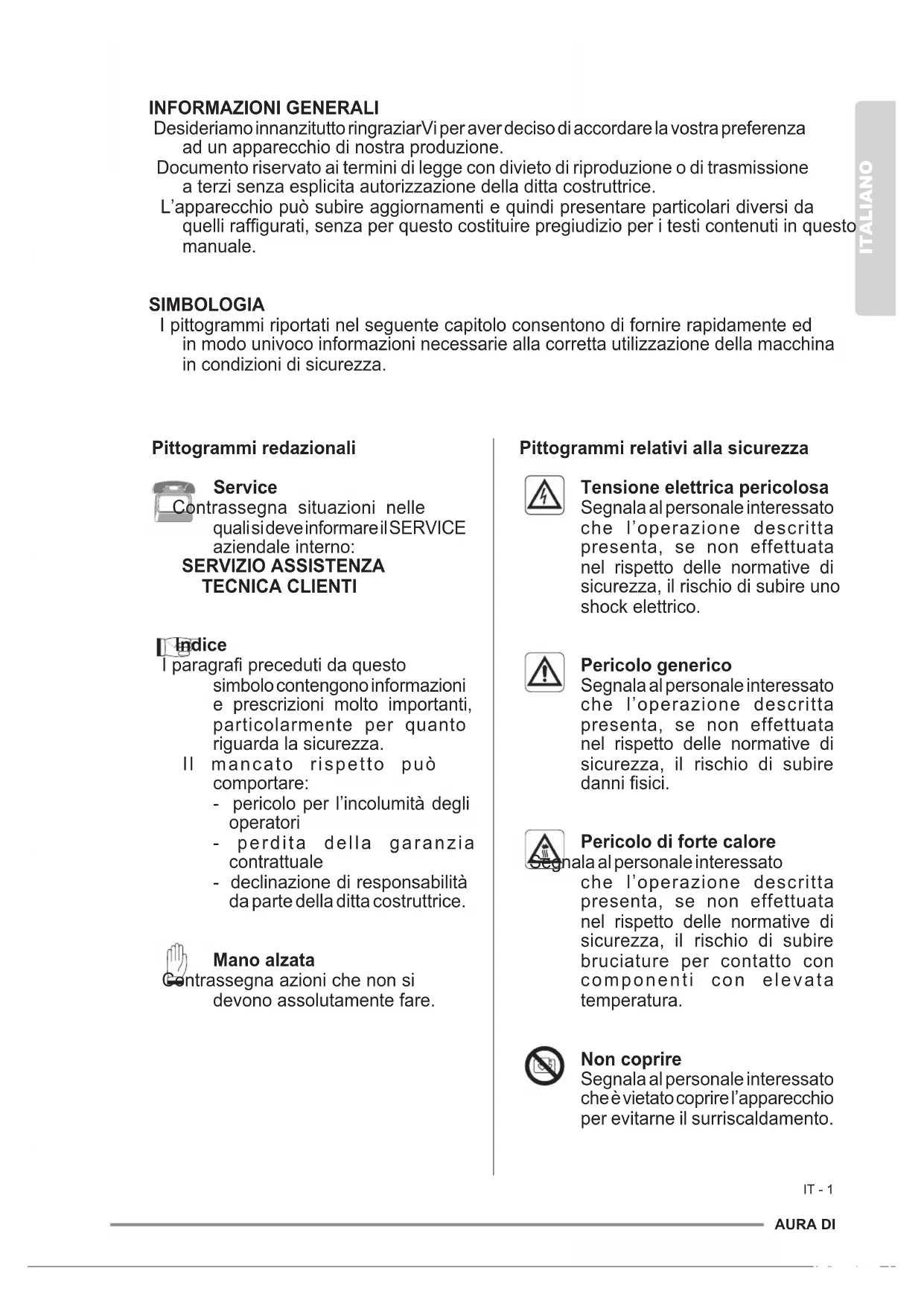 Leggere attendamente il presente manuale prima di procedere con qualsi operazione (installazione, manutenzione, uso) ed atteneri scrupolosamente a quanto descritto nei singoli capitoli. Conservare con cura quello libretto per agli ulteriore consulazione.