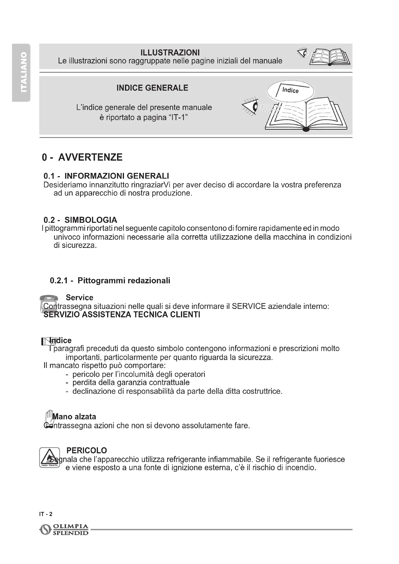 ATTENZIONE Indica che il personale di assistenza deve maneggiare l’apparecchio attenendosi al manuale di installazione.IT - 4 ITALIANO