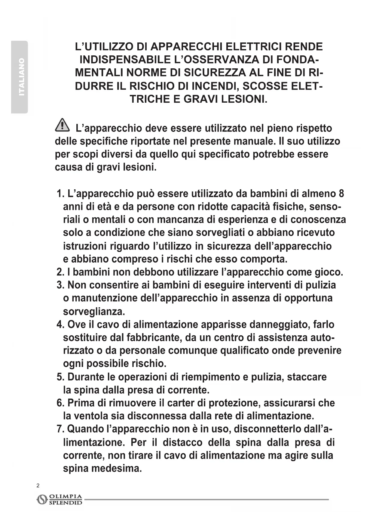 2. I bambini non debbono utilizzare l’apparecchio come gioco.