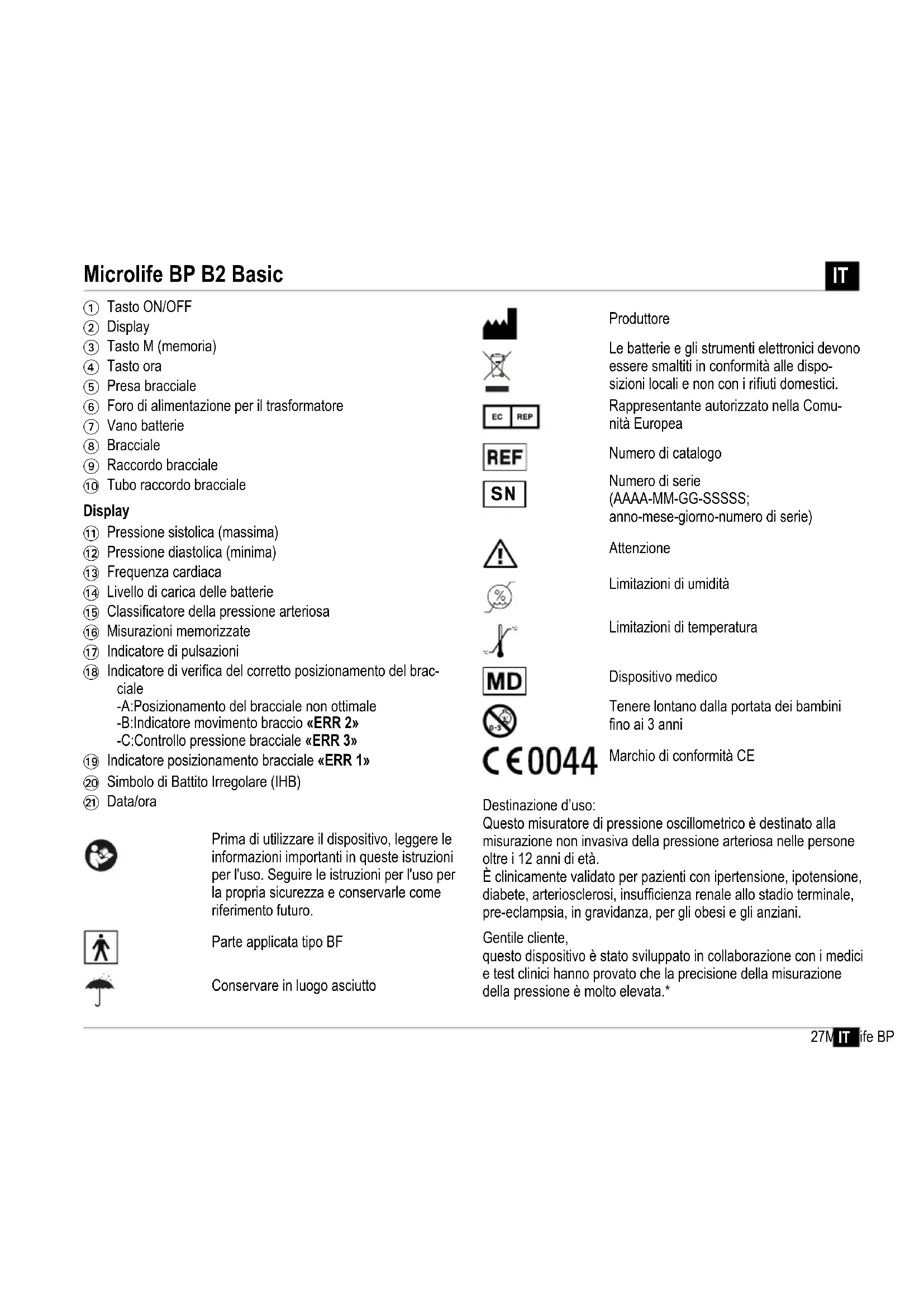MANUALE UTENTE BP B2 Basic MICROLIFE