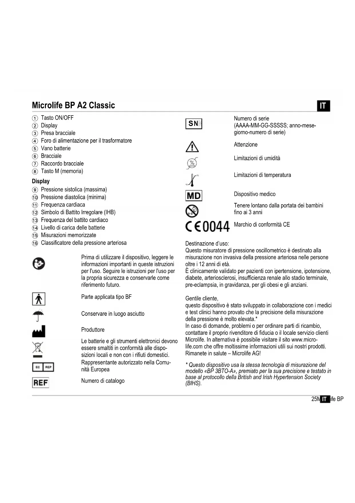 MANUALE UTENTE BP A2 Classic MICROLIFE