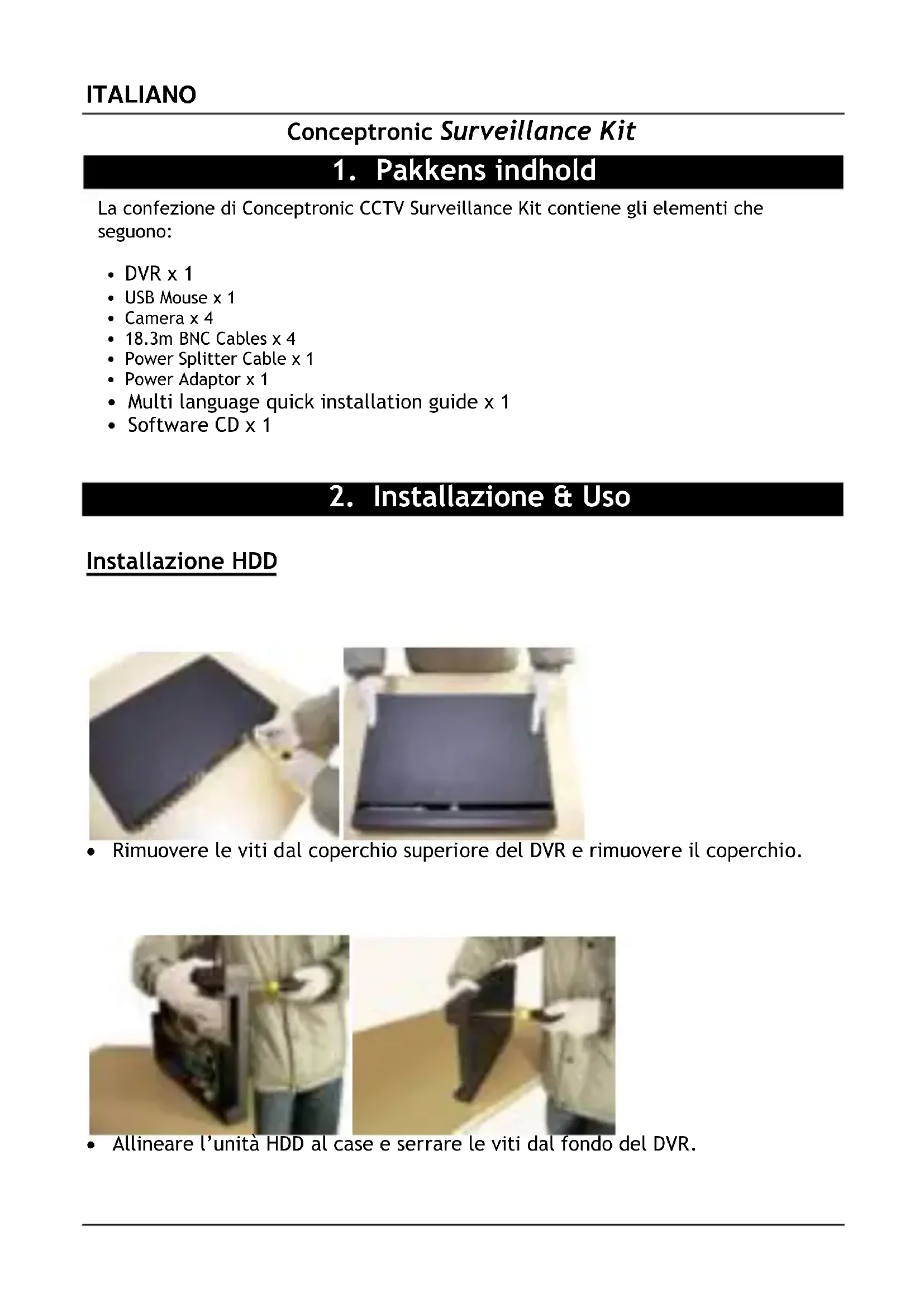 MANUALE UTENTE CCTV Surveillance Kit CONCEPTRONIC