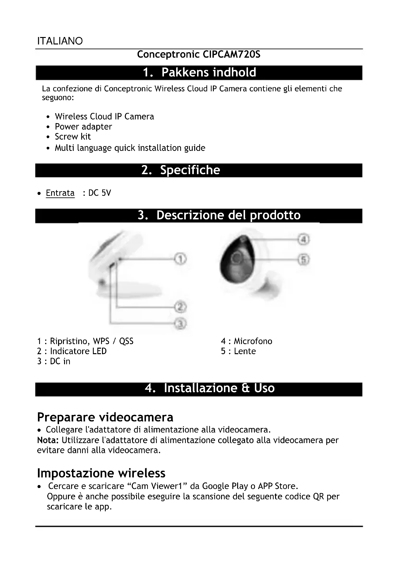 MANUALE UTENTE Wireless Cloud IP Camera Mini CIPCAM720S CONCEPTRONIC