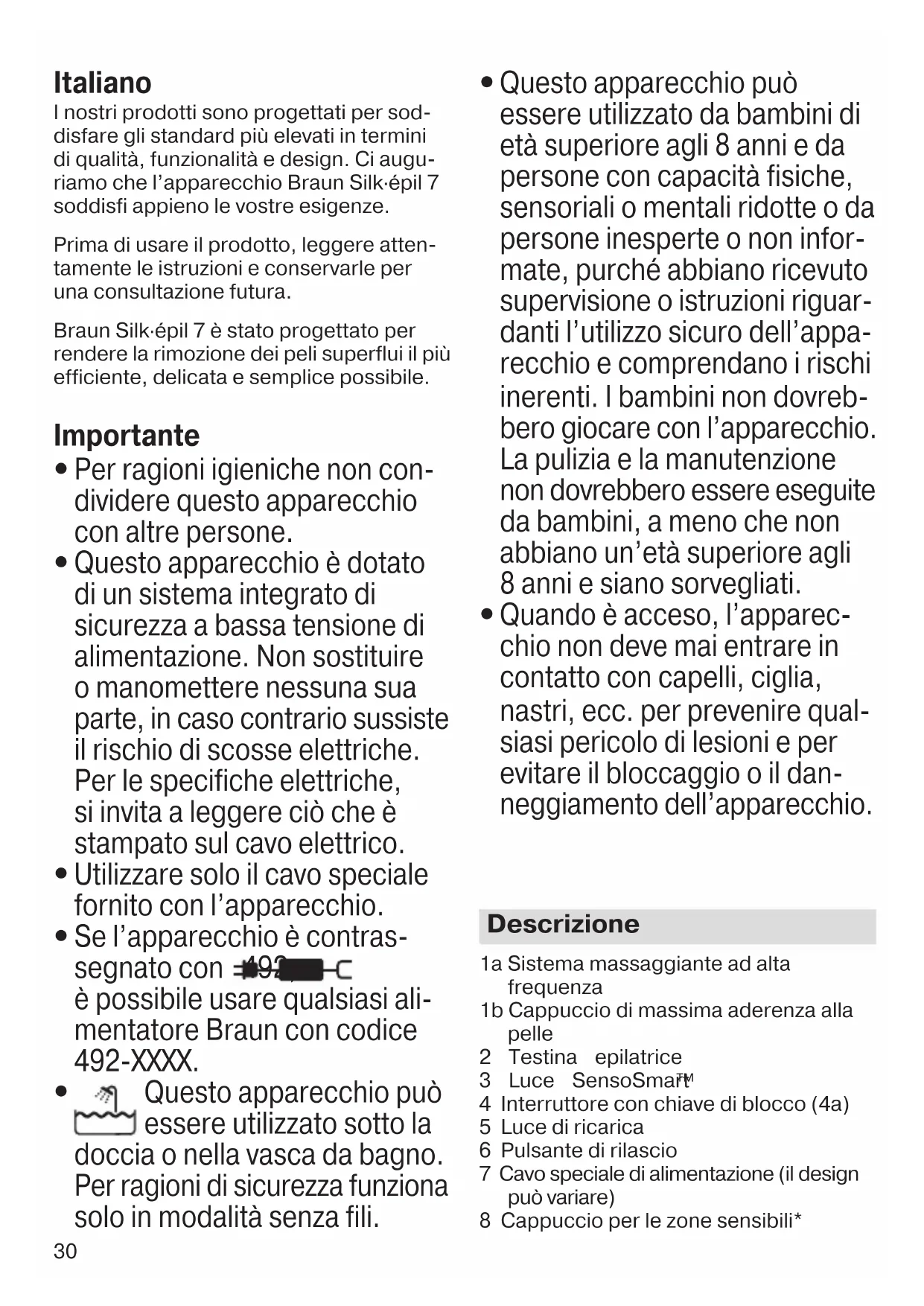 Se l’apparecchio è contras- segnato con 492, è possibile usare qualsiasi ali- mentatore Braun con codice 492-XXXX.