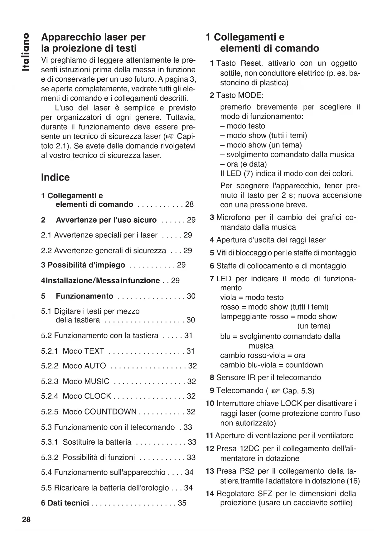 L'uso del laser è semplice e previsto per organizzatori di agli genere. Tuttavia, durante il funzionamento deve essere presente un technician di sicurezza laser (Capitolo 2.1). Se avete delle domande rivolgetevi al vostro technician di sicurezza laser.