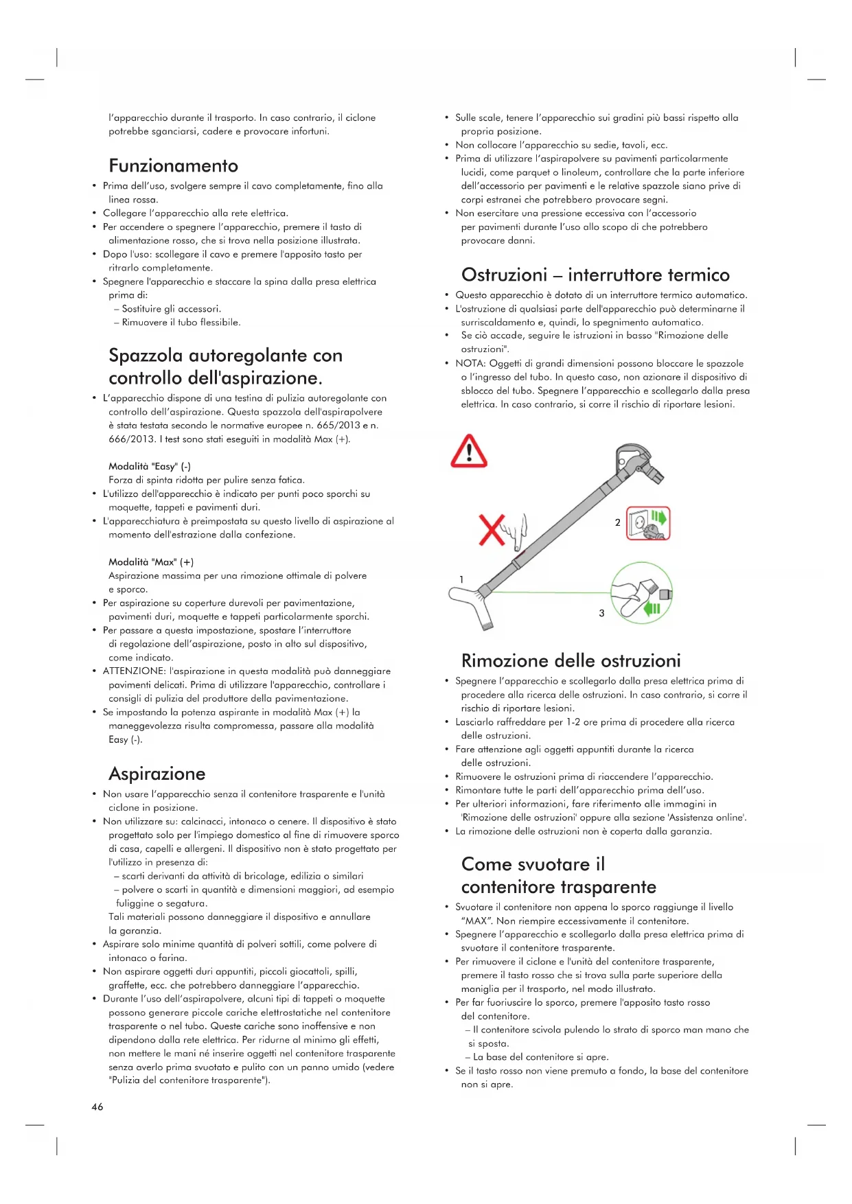 - La rimozione delle ostruzioni non è coperta dalla garanzia. Come svuotare il contenitore trasparente