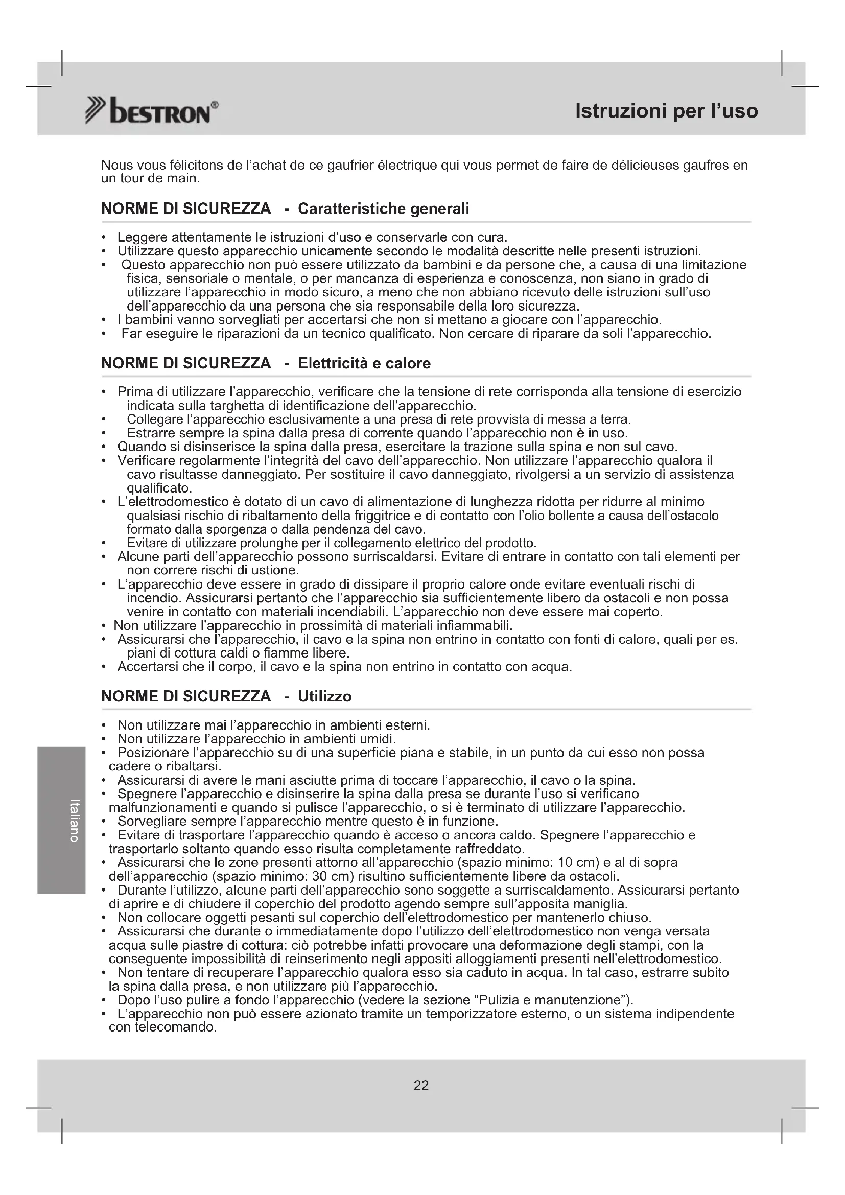 Scarica le istruzioni per il tuo Piastra per waffle in formato PDF gratuitamente! Trova il tuo manuale ASW40 - BESTRON e riprendi in mano il tuo dispositivo elettronico. In questa pagina sono pubblicati tutti i documenti necessari per l'utilizzo del tuo dispositivo. ASW40 del marchio BESTRON.