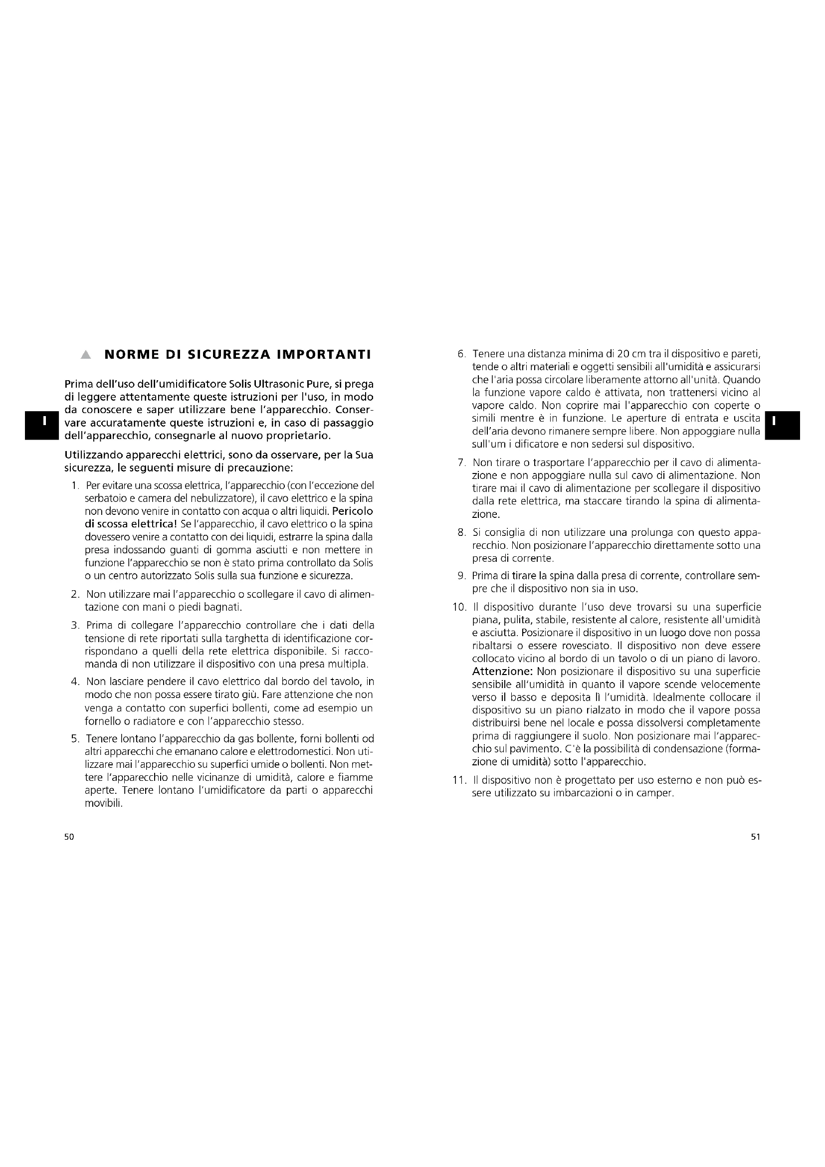 Prima dell'uso dell'umidificatore Solis Ultrasonic Pure, si prega di leggere attentamente queste istruzioni per l'uso, in modo da conoscere e saper utilizzato bene l'apparecchio. Conservare accuramente queste istruzioni e, in caso di passaggio dell'apparecchio, consegrarle al nuovo proprietario.