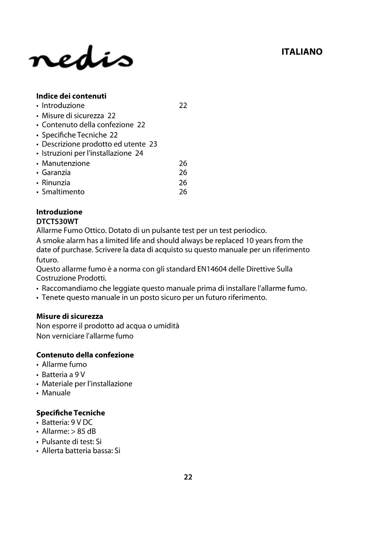 Scarica le istruzioni per il tuo Rilevatore di fumo in formato PDF gratuitamente! Trova il tuo manuale DTCTS30WT - NEDIS e riprendi in mano il tuo dispositivo elettronico. In questa pagina sono pubblicati tutti i documenti necessari per l'utilizzo del tuo dispositivo. DTCTS30WT del marchio NEDIS.