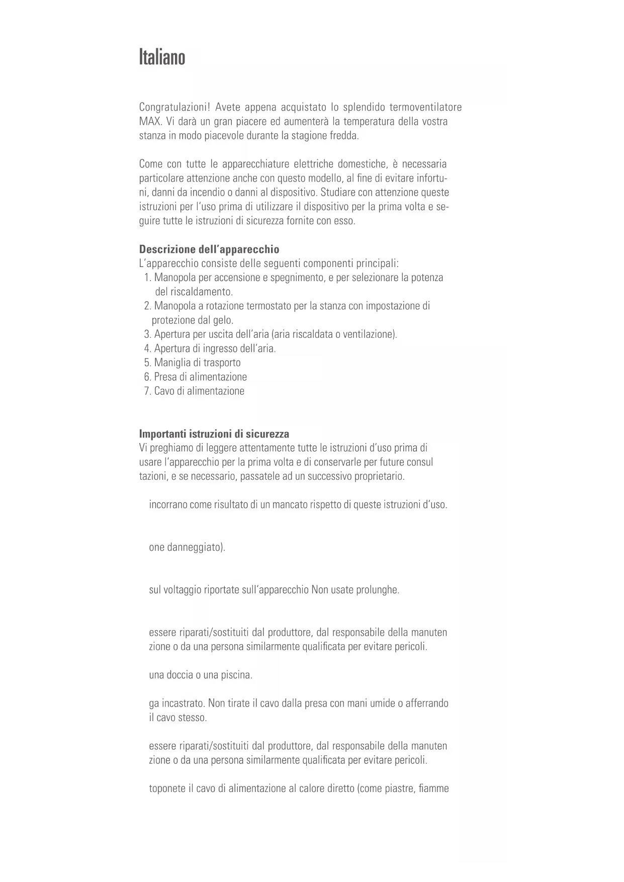 Congratulazioni! Avete appena acquistato lo splendido termoventilatore MAX. Vi darà un gran piacere ed aumento la temperature della vostra stanza in modo piacevole durante la stagione fredda.
