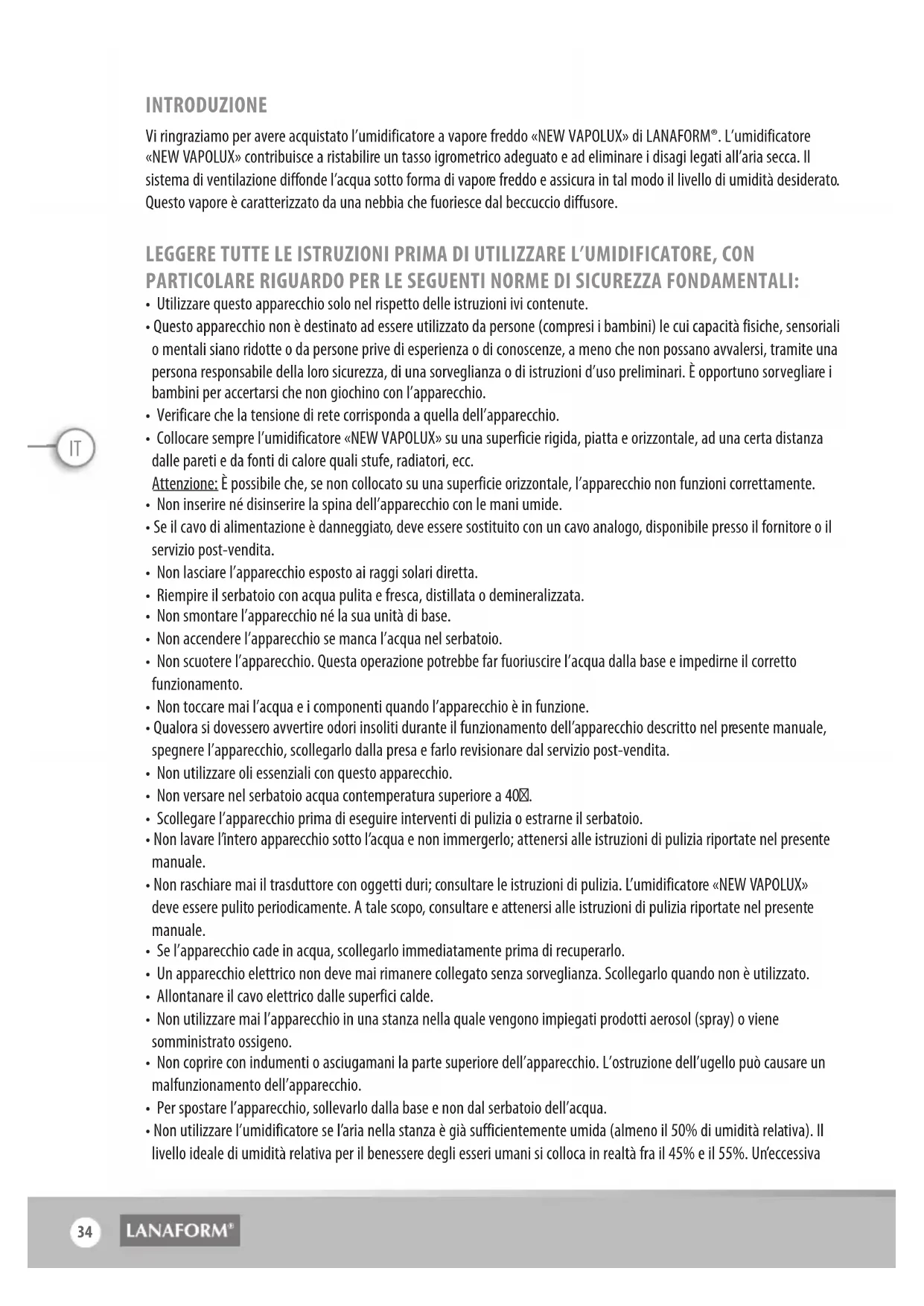 New Vapolux - Umidificatore LANAFORM - Manuale utente e istruzioni gratuiti