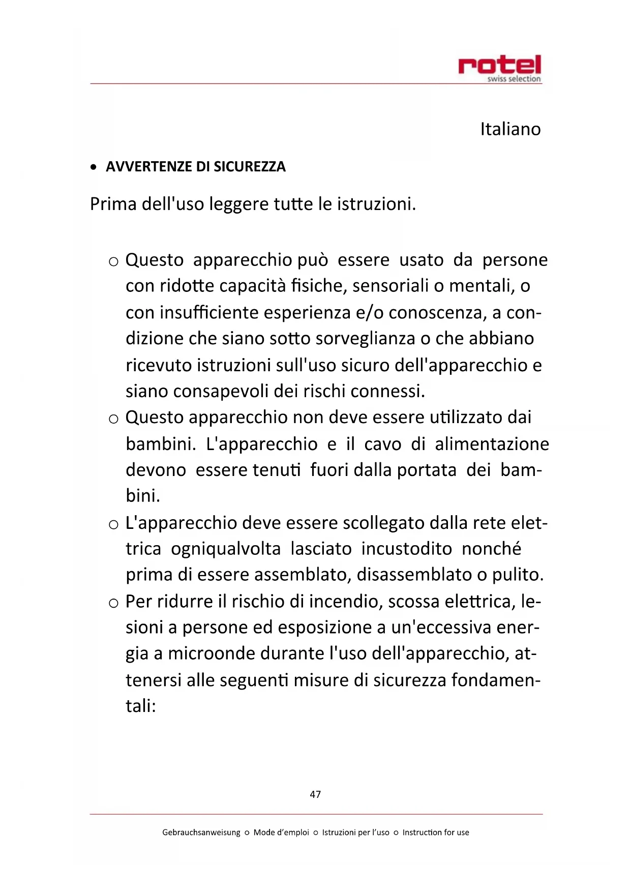 Italiano 47 - Avvertenze di sicurezza 47