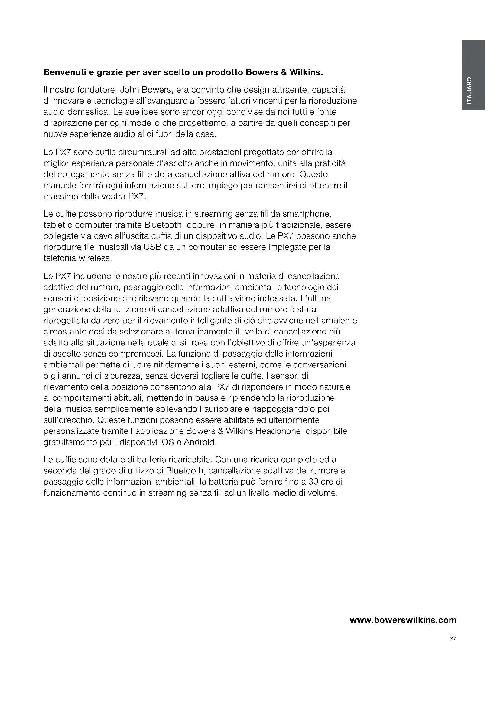 MANUALE UTENTE PX7 BOWERS & WILKINS
