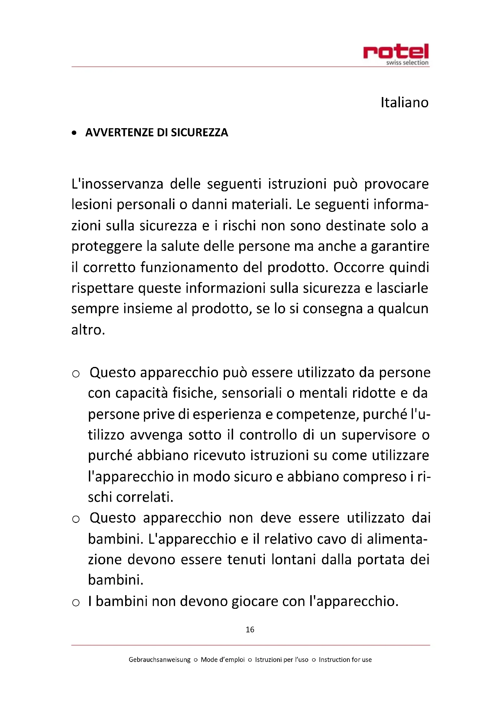 Per lo smaltimento corretto, la macchina deve essere restituita al rivenditore specializzato, al servizio di assistenza o alla ditta Rotel AG.