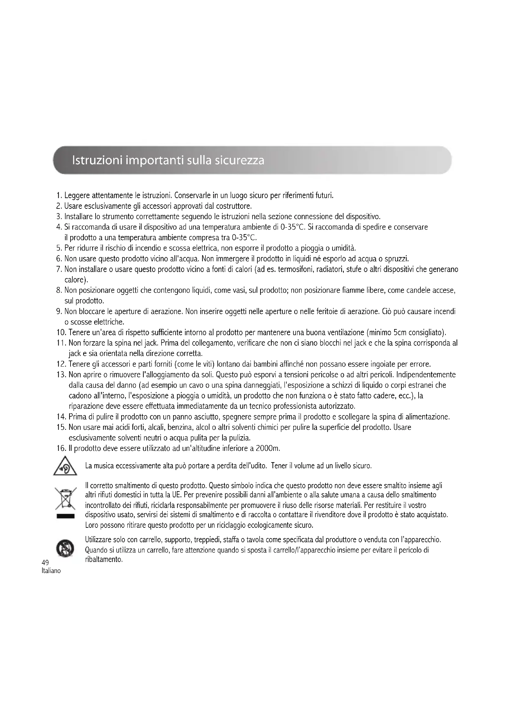 Istruzioni importanti sulla sicurezza
