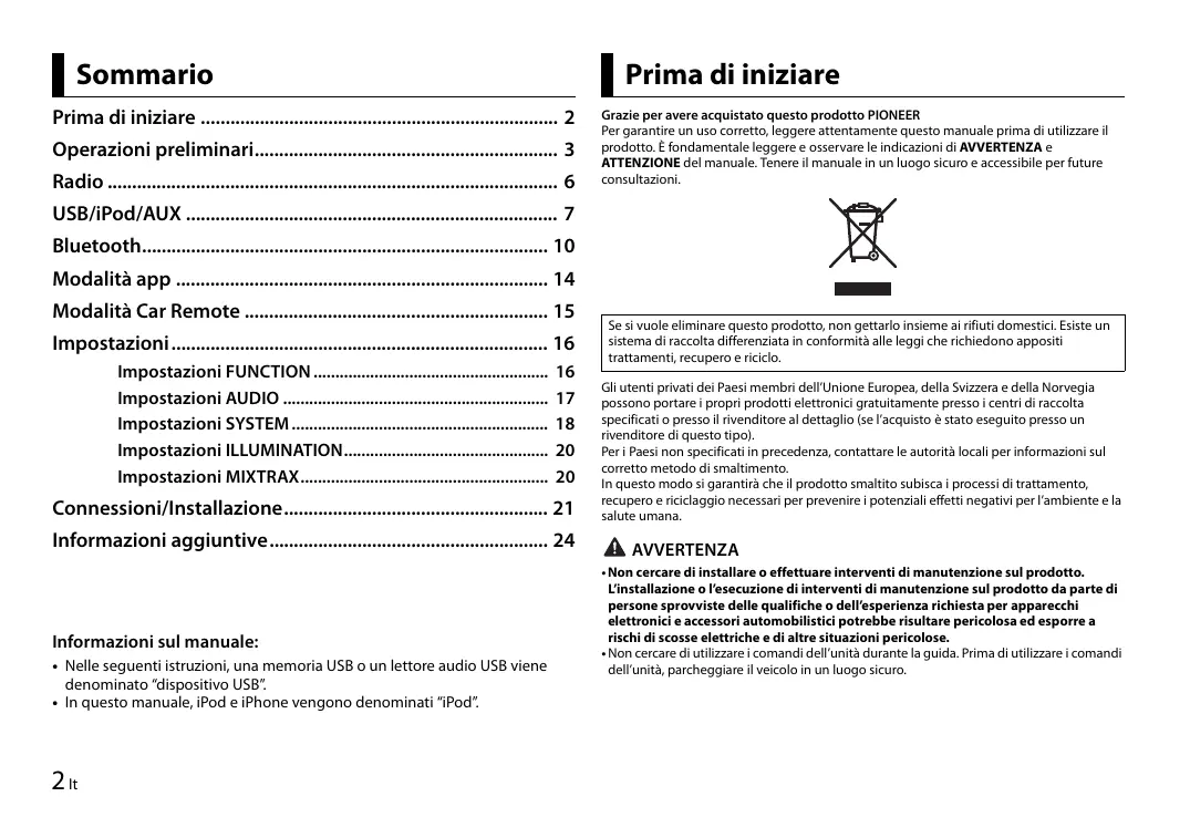 MVH-X380BT - Autoradio Bluetooth PIONEER - Manuale utente e istruzioni gratuiti