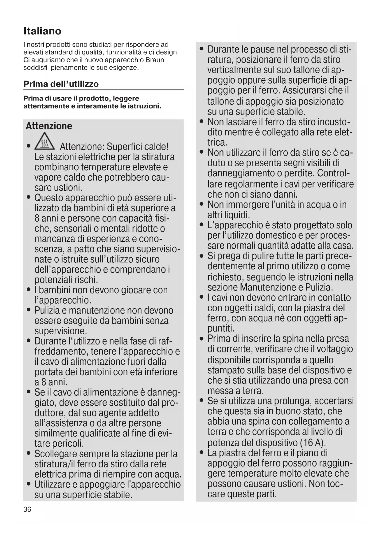 Attenzione: Superfici calde! Le stazioni elettriche per la stiratura combinano temperature elevate e vapore caldo che potrebbero cau- sare ustioni.