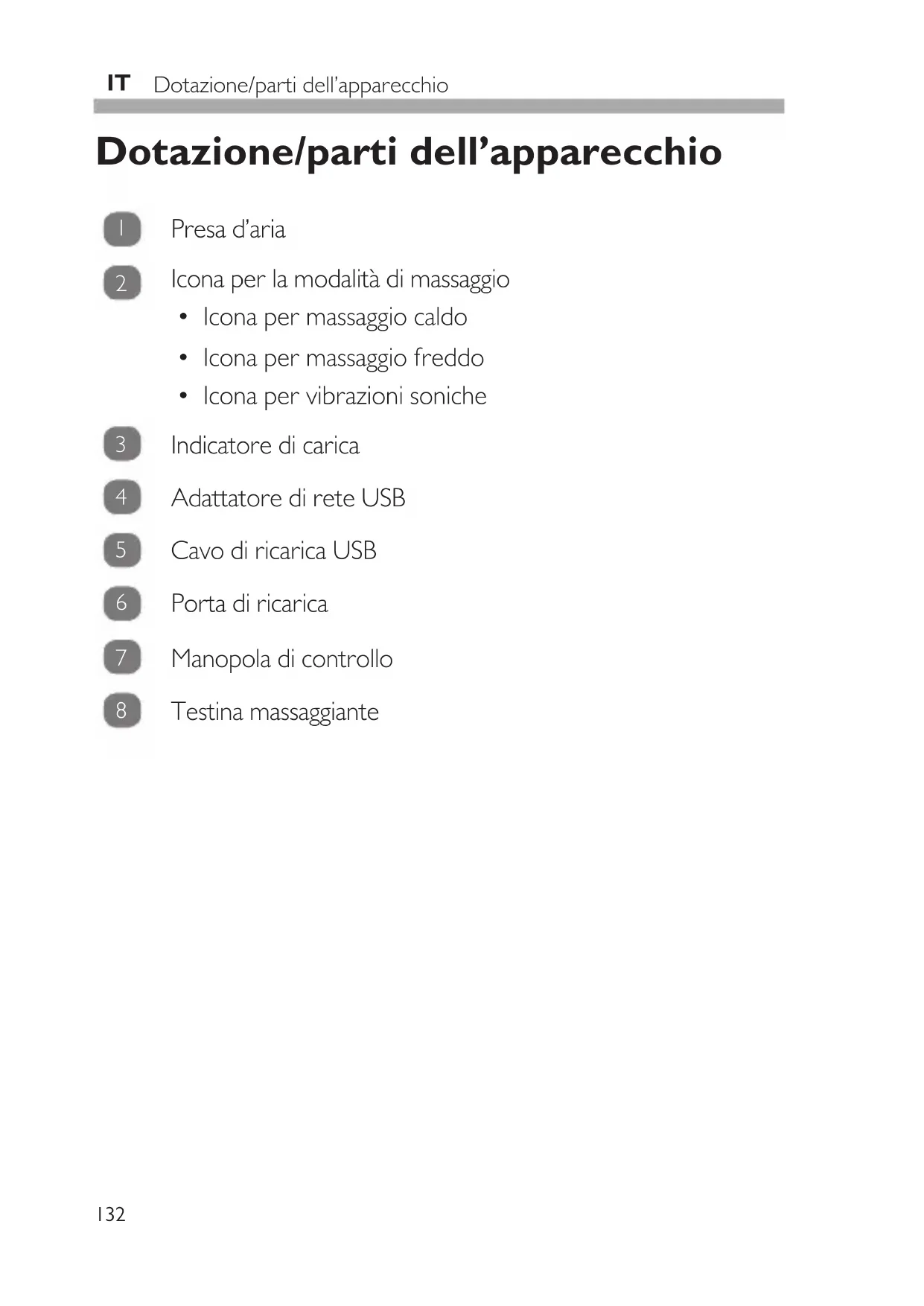 Dotazione/parti dell'apparecchio 132