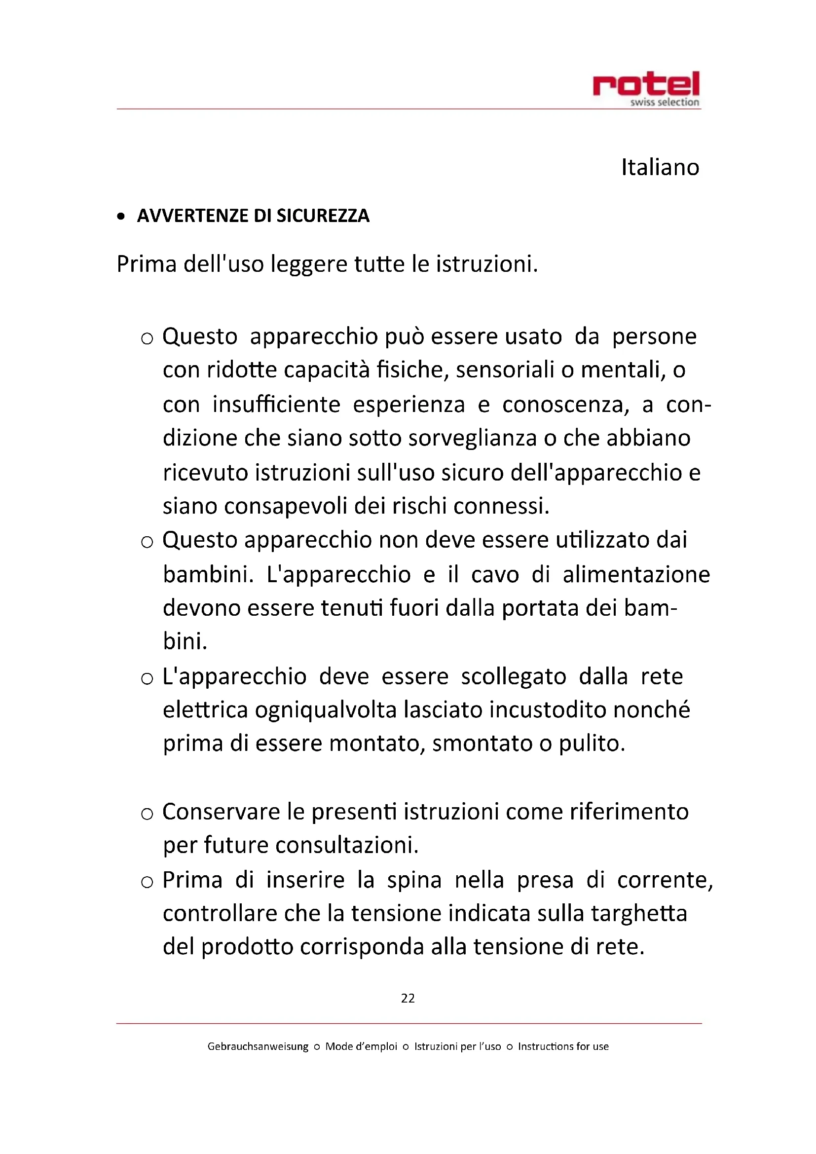 - Avvertenze di sicurezza 22