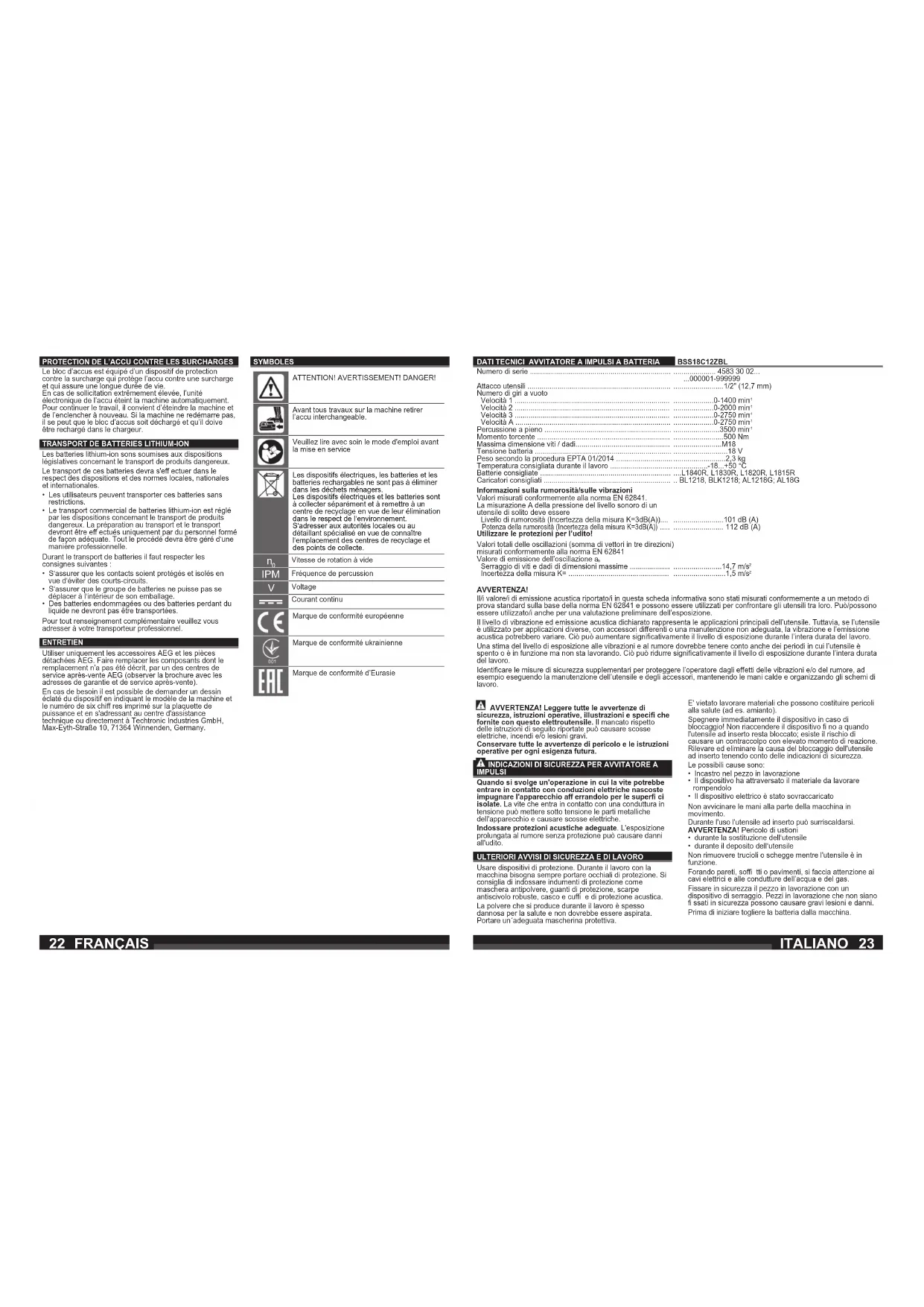BSS18C12ZBL - Utensile manuale AEG - Manuale utente e istruzioni gratuiti