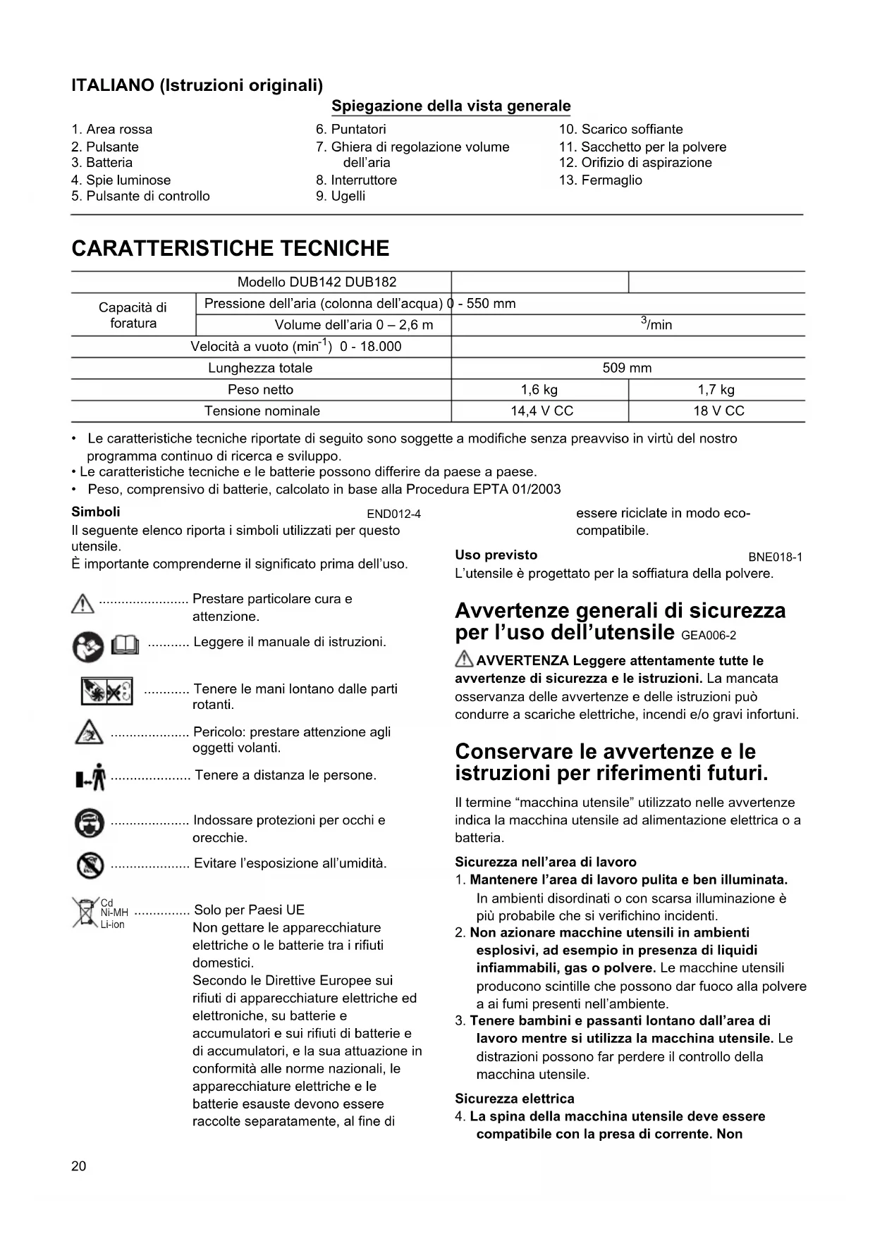 AVVERTENZE DI SICUREZZA PER SOFFIANTE SENZA FILI/SOFFIANTE DA GIARDINO/PER VUOTO GEB098-1