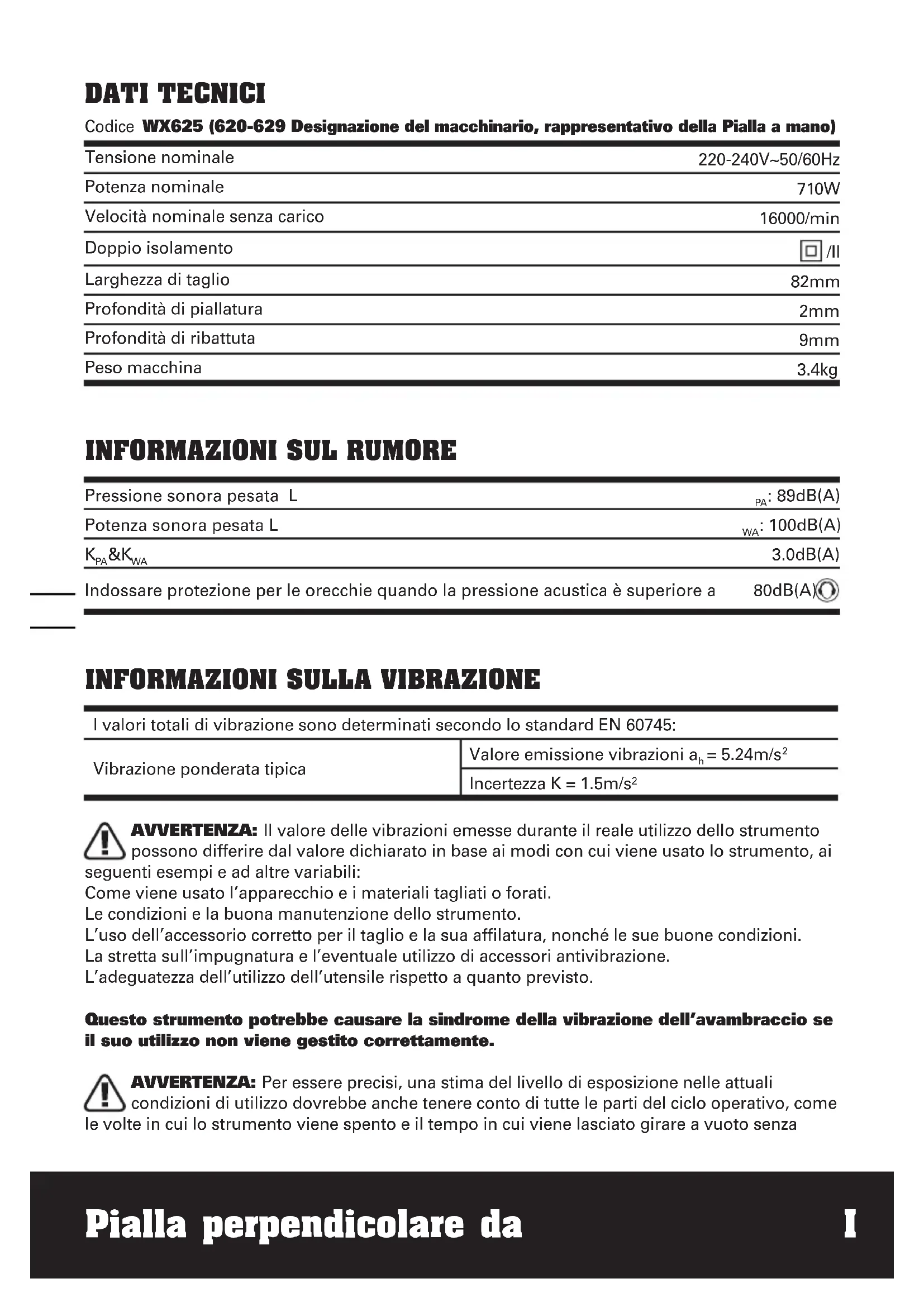 Scarica le istruzioni per il tuo Pialla in formato PDF gratuitamente! Trova il tuo manuale WX625 - WORX e riprendi in mano il tuo dispositivo elettronico. In questa pagina sono pubblicati tutti i documenti necessari per l'utilizzo del tuo dispositivo. WX625 del marchio WORX.