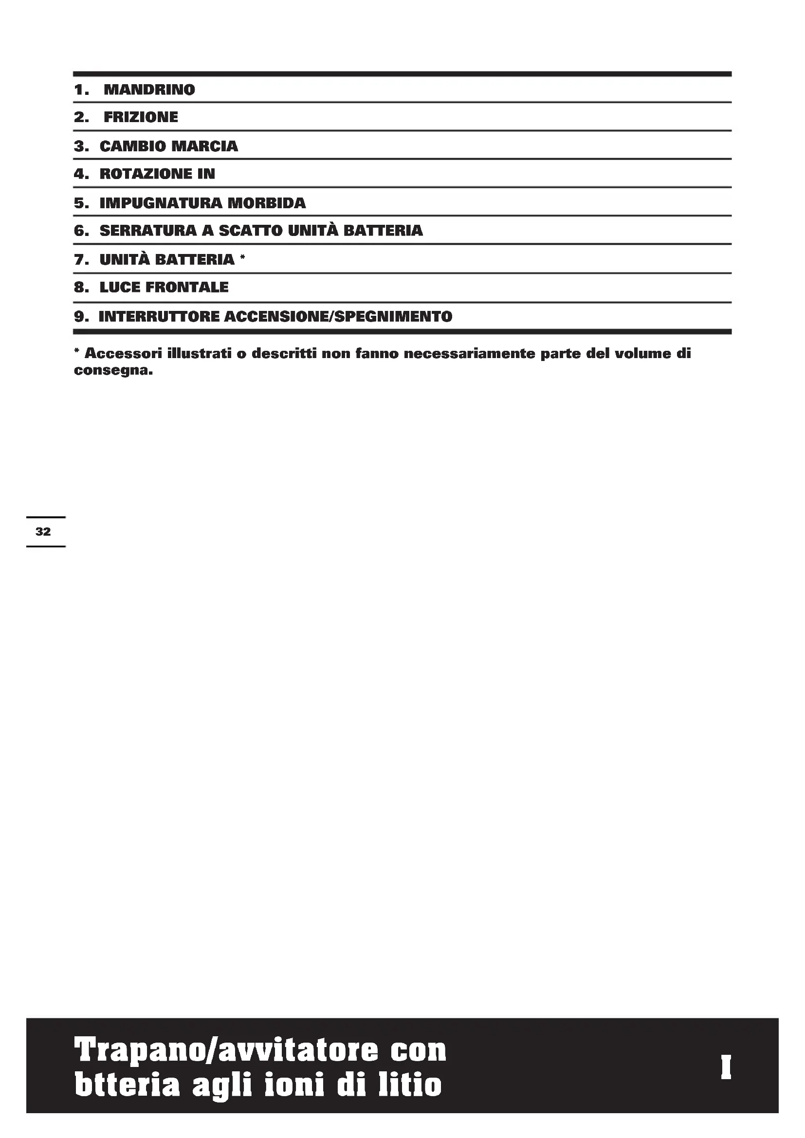 - Accessori illustrati o descritti non fanno necessariamente parte del volume di consegna.33 Trapano/avvitatore con btteria agli ioni di litio